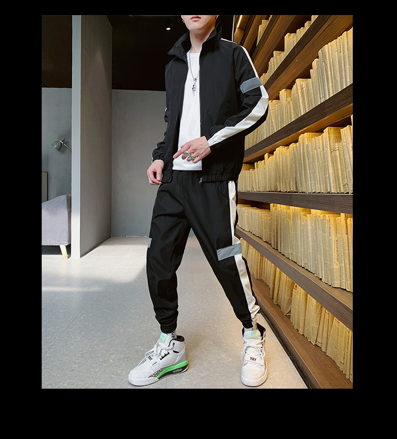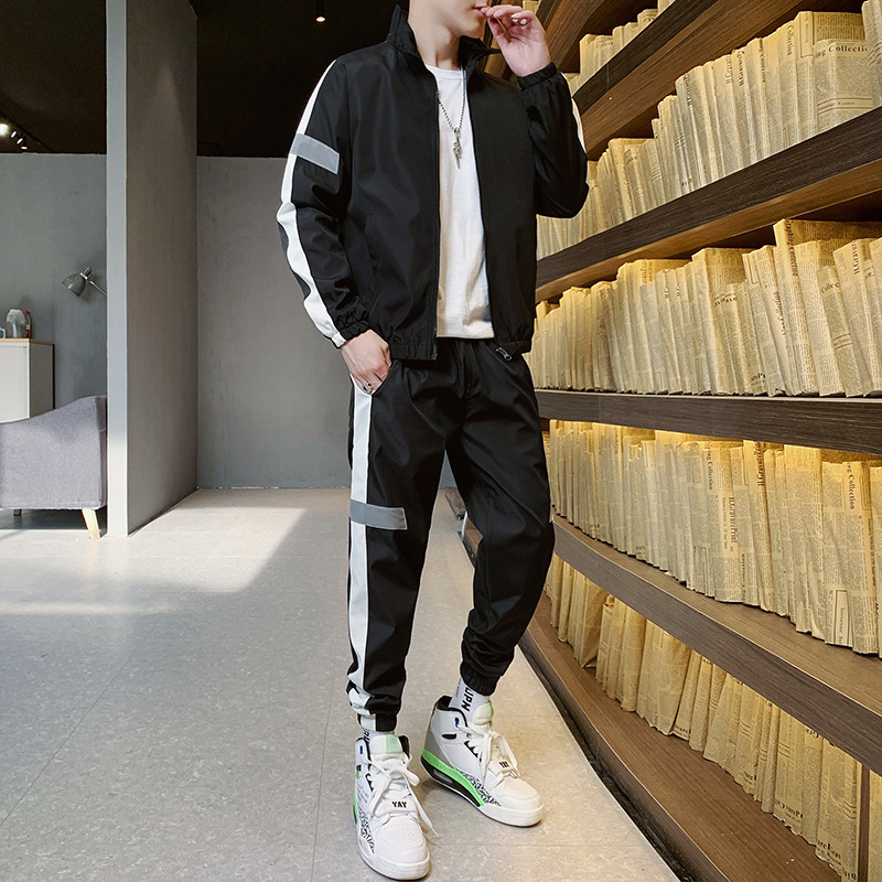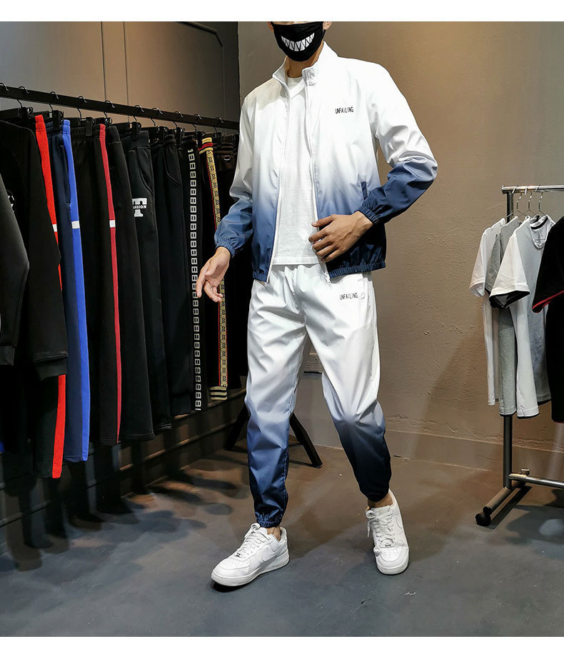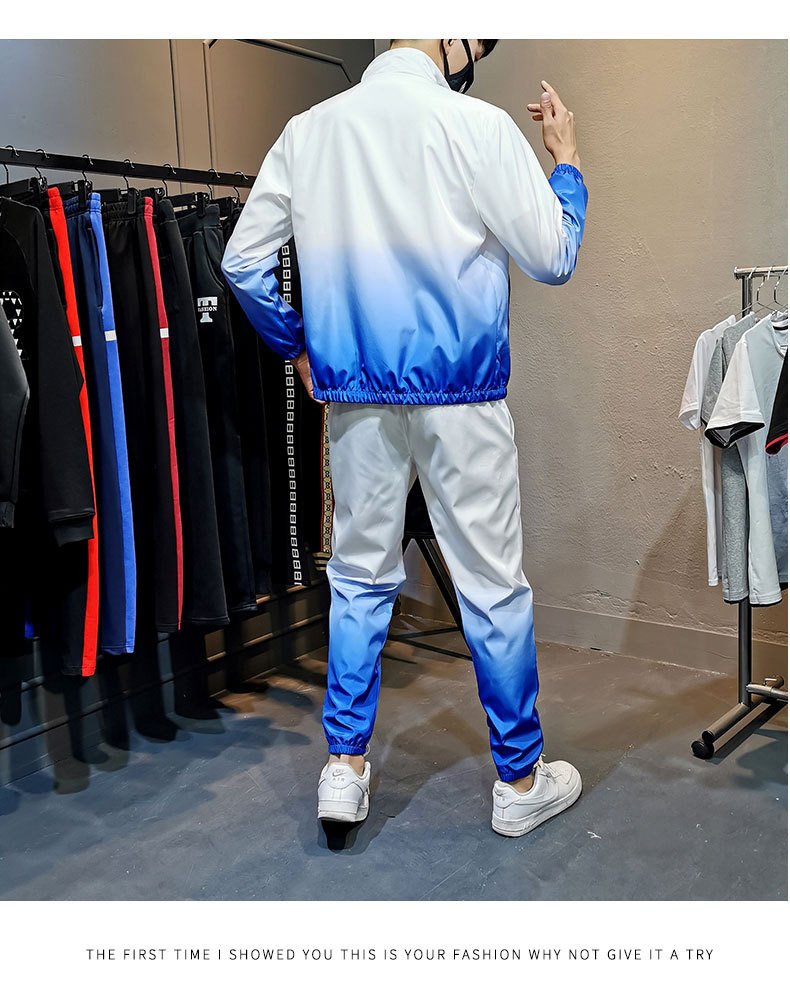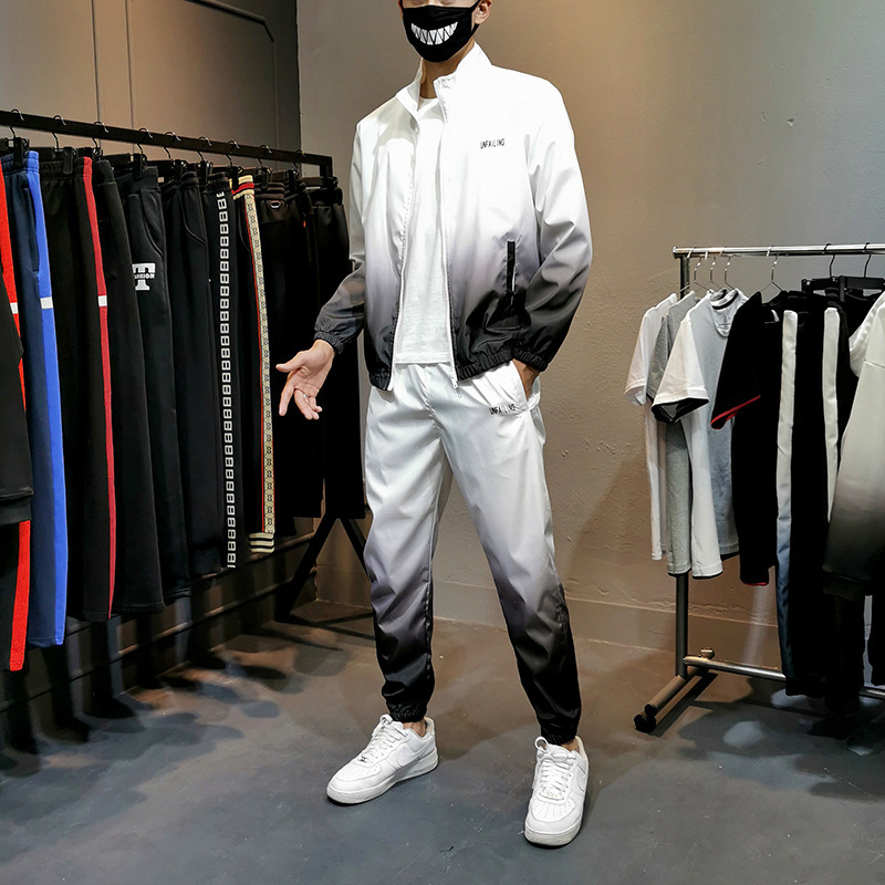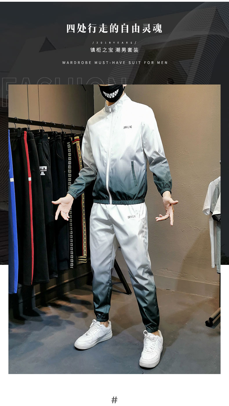 가을과 겨울 캐주얼 세트 한국 유행 점진적 수직 칼라 양털 재킷 남성용 스포츠웨어 방수 방풍 재킷