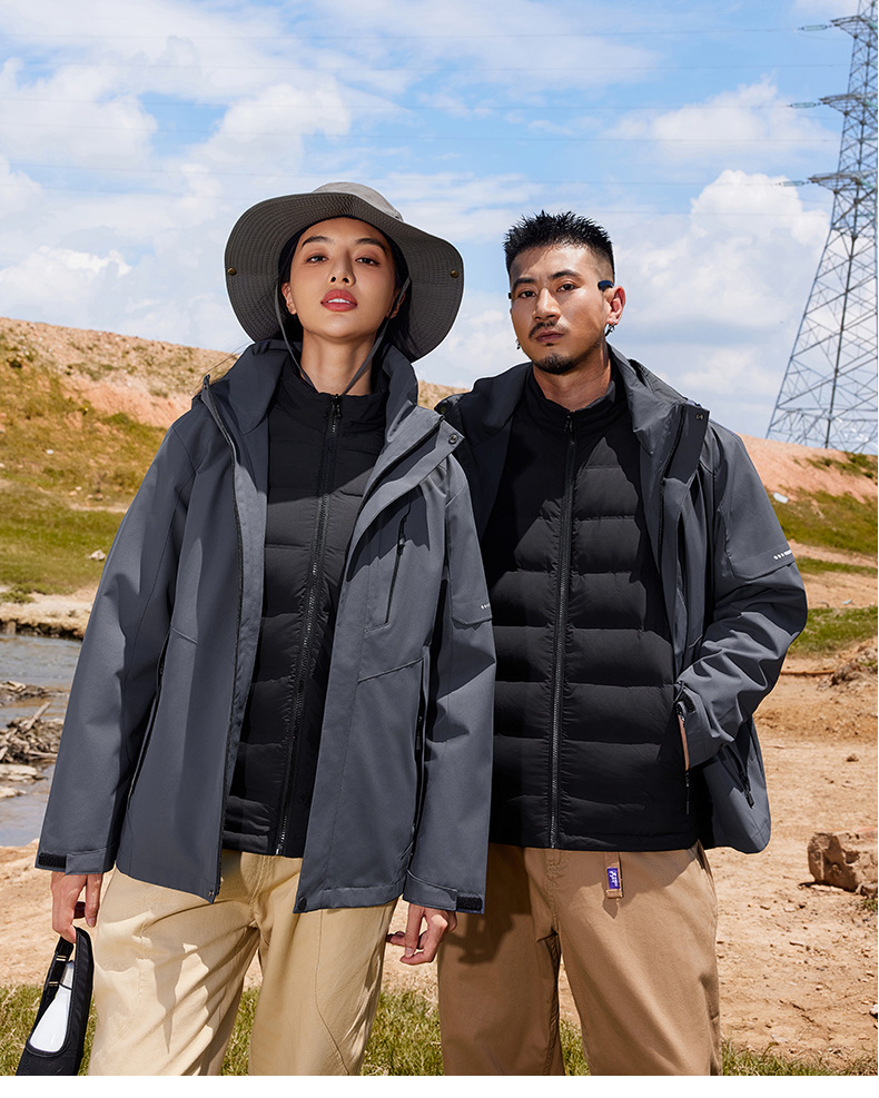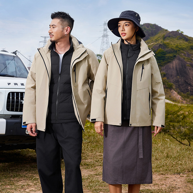 야외 러쉬 의류 커플 투피스 세트 3-in-1 다운 라이너 방수 따뜻한 기능성 러쉬 의류 단층 가정용 남성