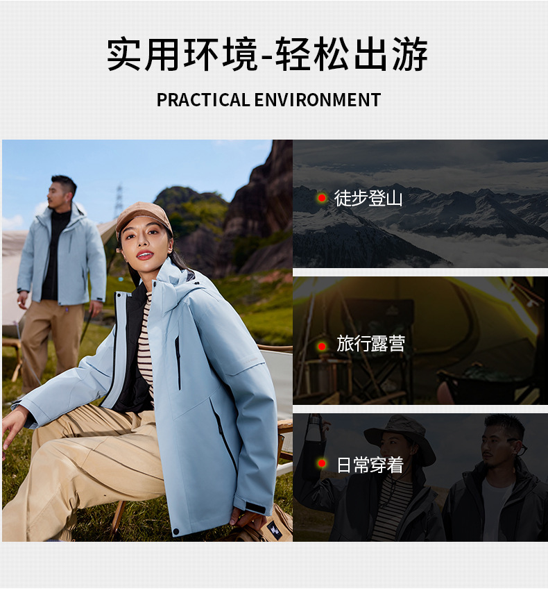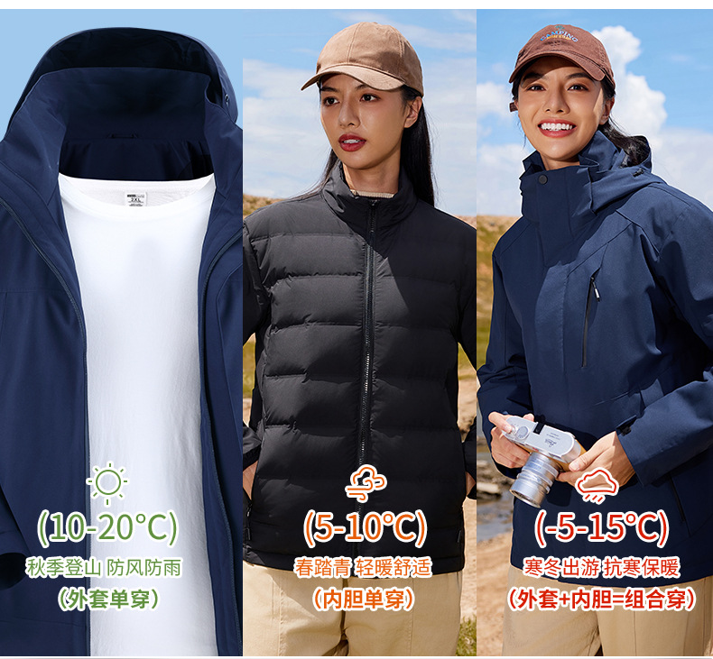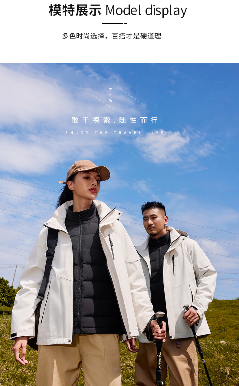 야외 러쉬 의류 커플 투피스 세트 3-in-1 다운 라이너 방수 따뜻한 기능성 러쉬 의류 단층 가정용 남성스토어 가기