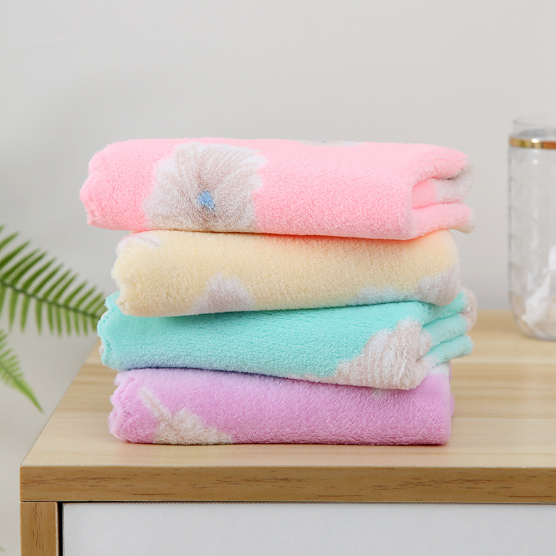공장 직영 산호 양털 인쇄 사각 깃털 연질 흡수 타월 유치원 타월 도매