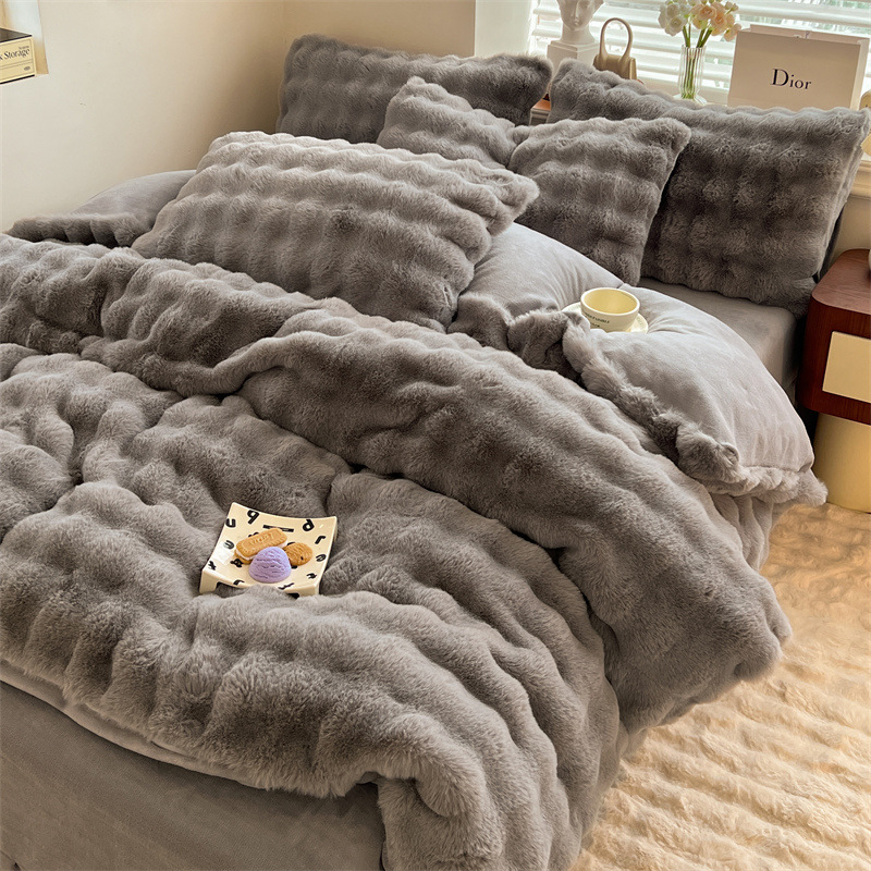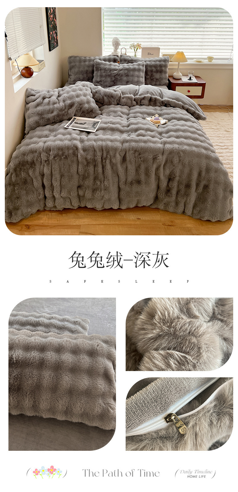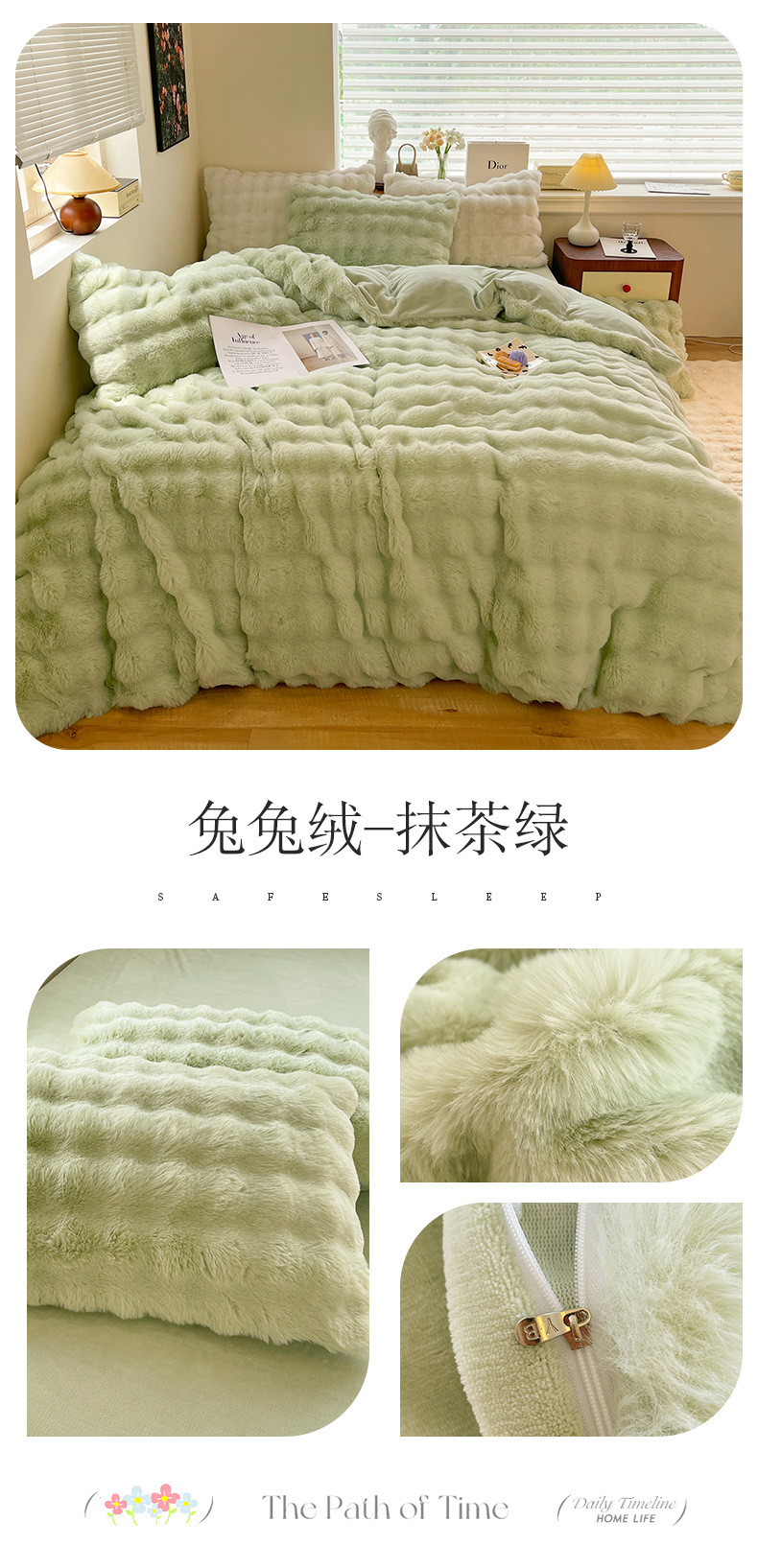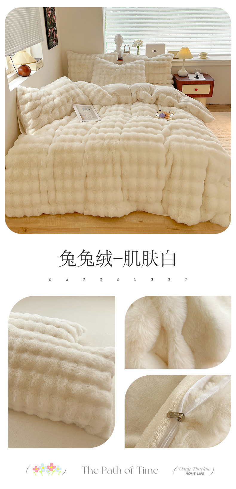 부드러운 토끼 벨벳 토끼 벨벳 4 종 세트 밀크 벨벳 겨울 아기 벨벳 플란넬 산호 벨벳 침대 시트 3 종 세트