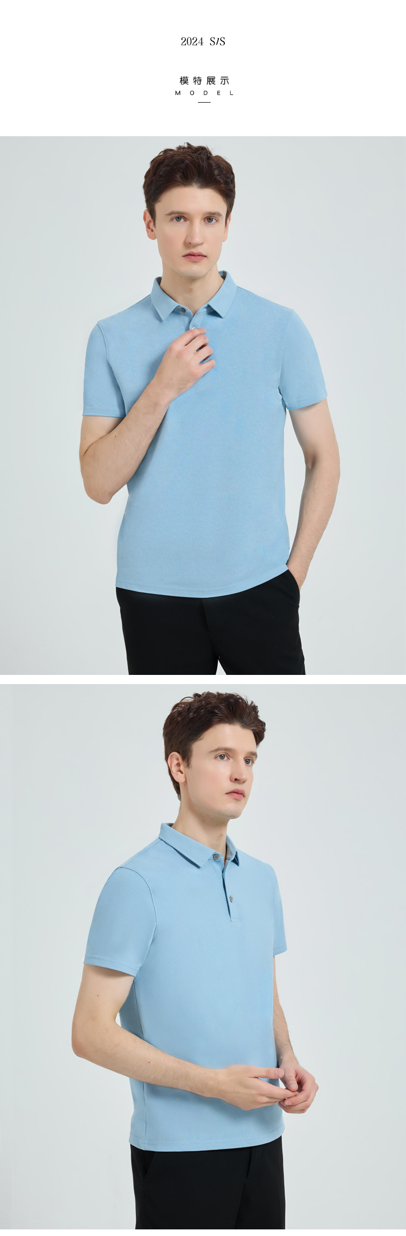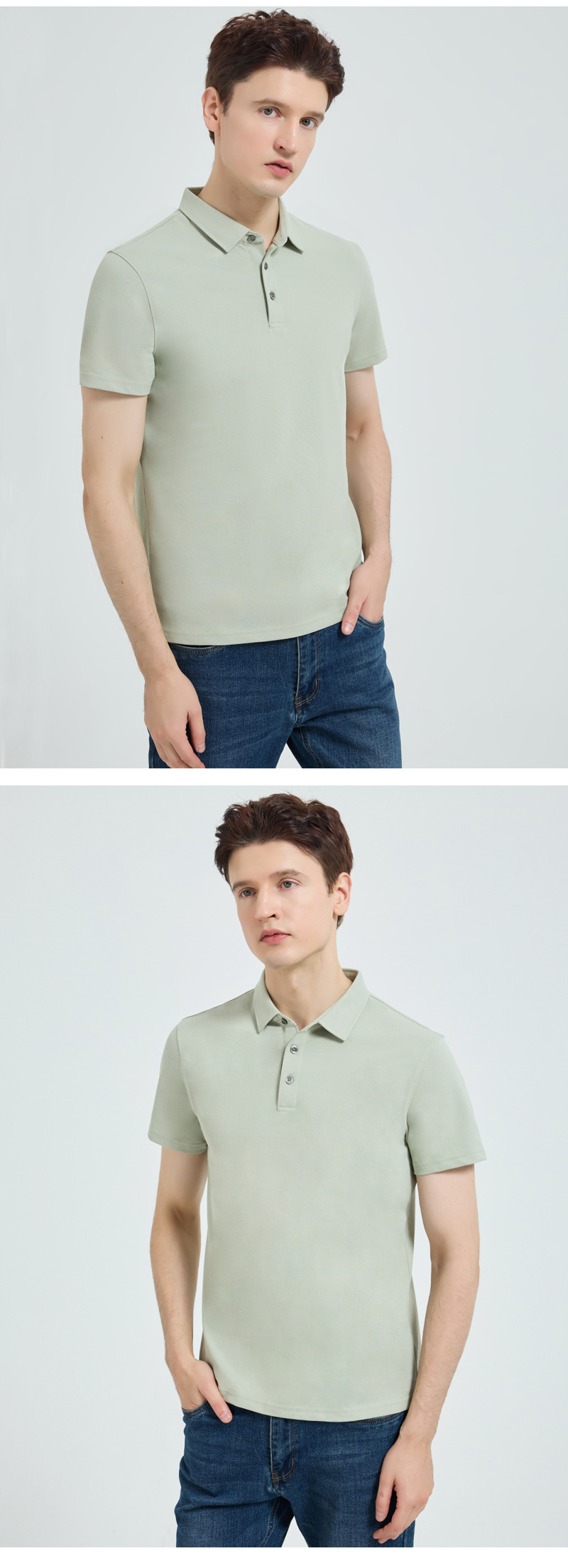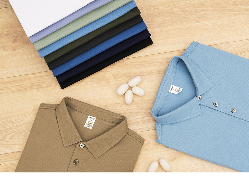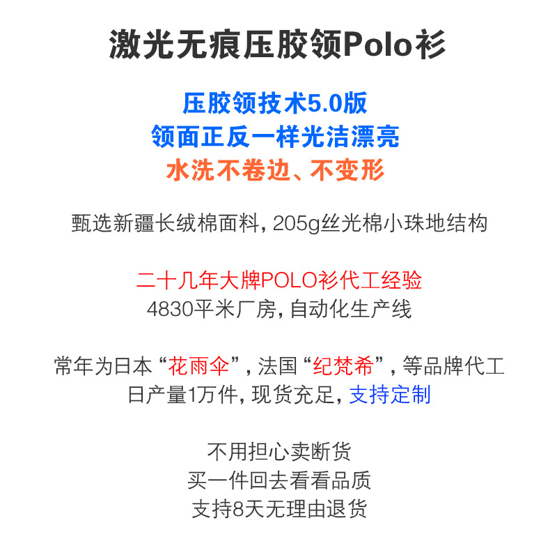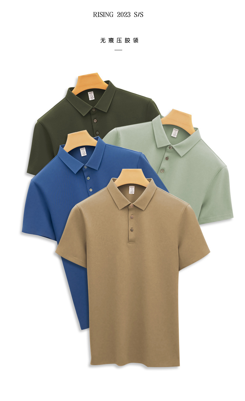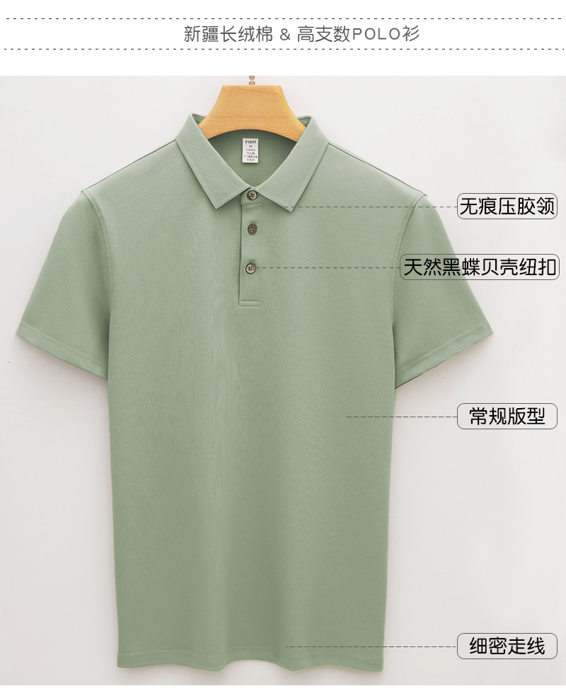하이 엔드 205g 코튼 프레스 고무 칼라 폴로 셔츠 남성용 반팔 남성 티셔츠 비즈니스 롱스테이플 코튼 이음매없는 칼라 폴로 셔츠스토어 가기