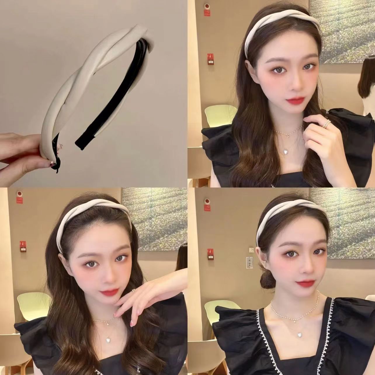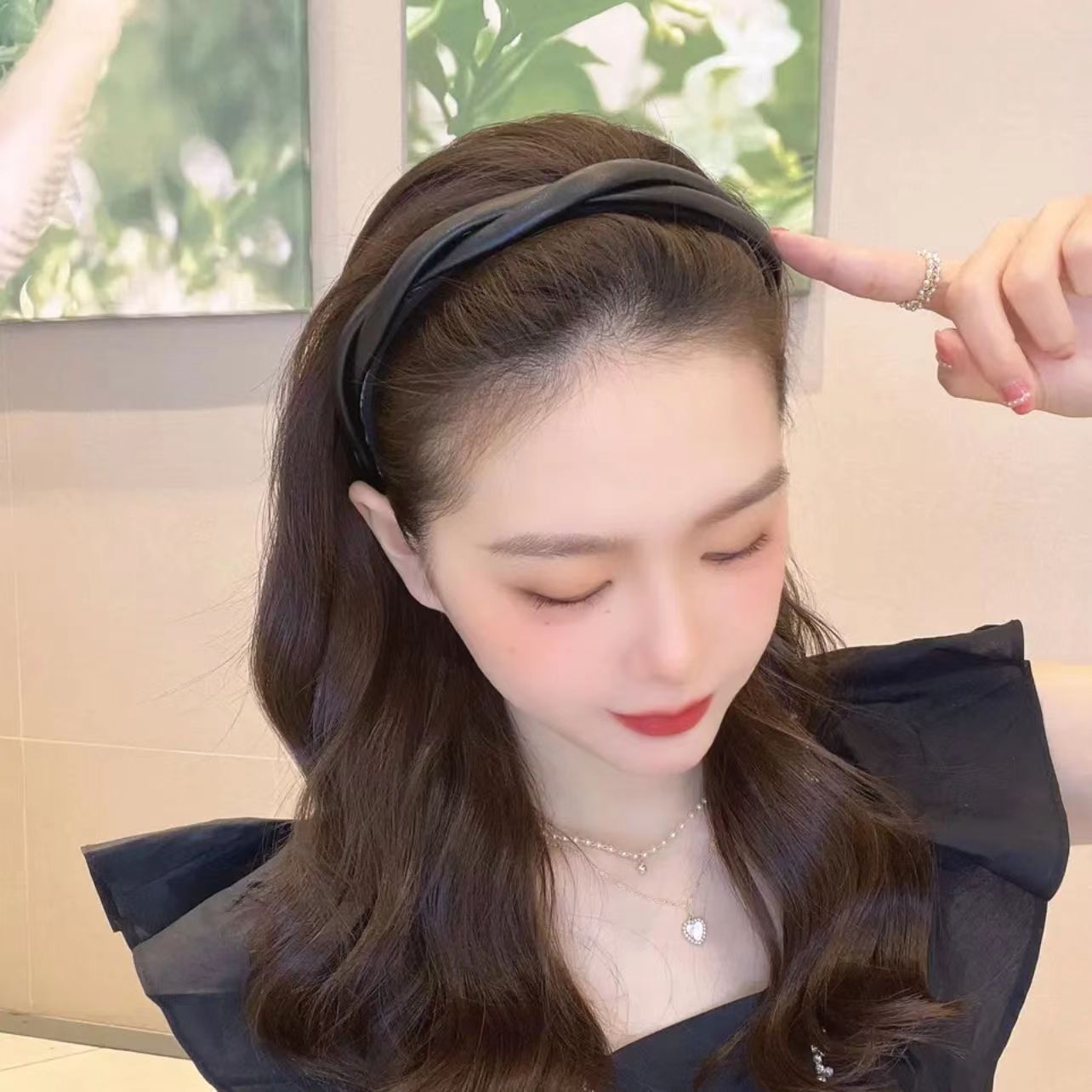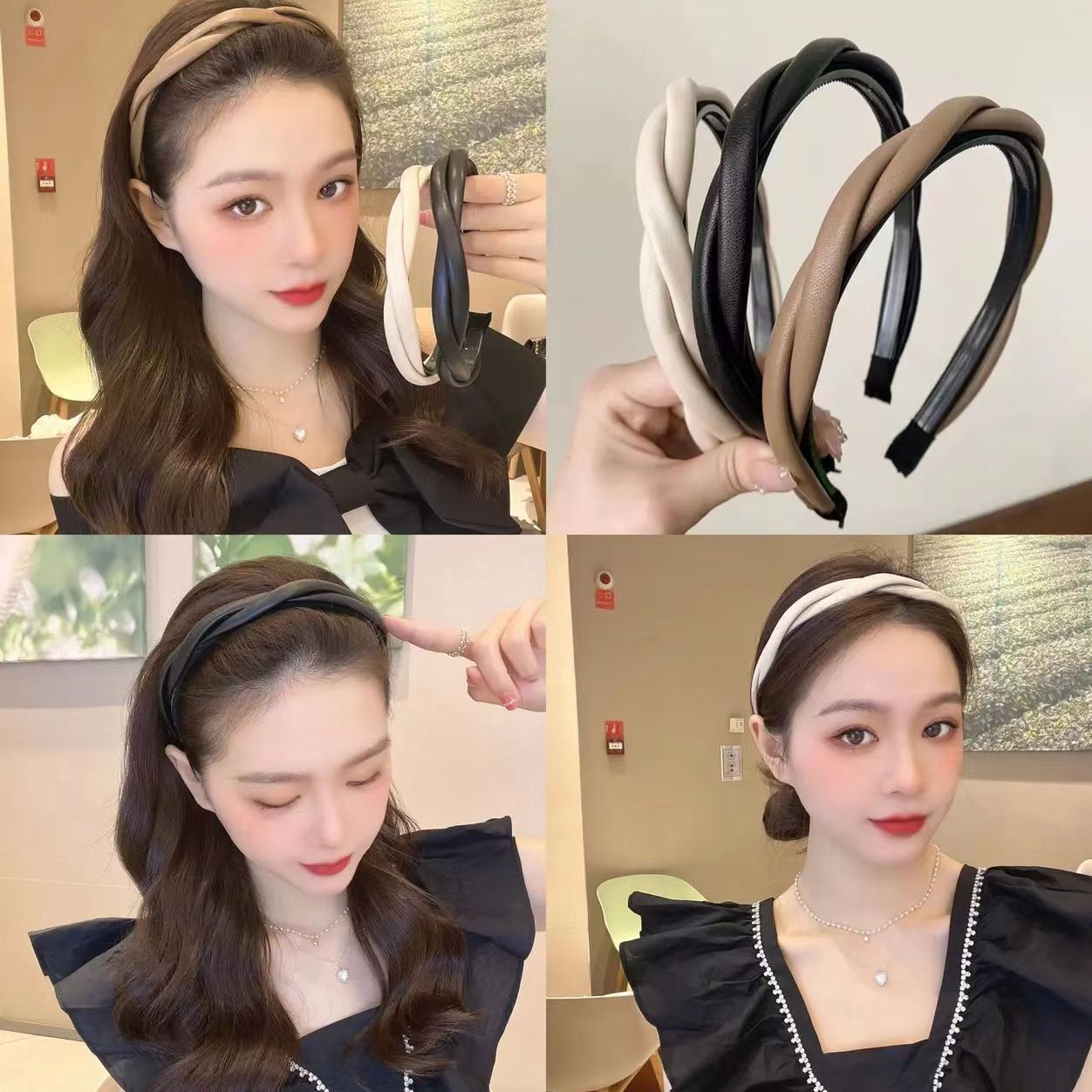 한국식 우아한 크로스 트위스트 가죽 머리띠 고급 단색 심플 모든 매치 나가는 머리띠 레트로 pu 헤어 클립스토어 가기