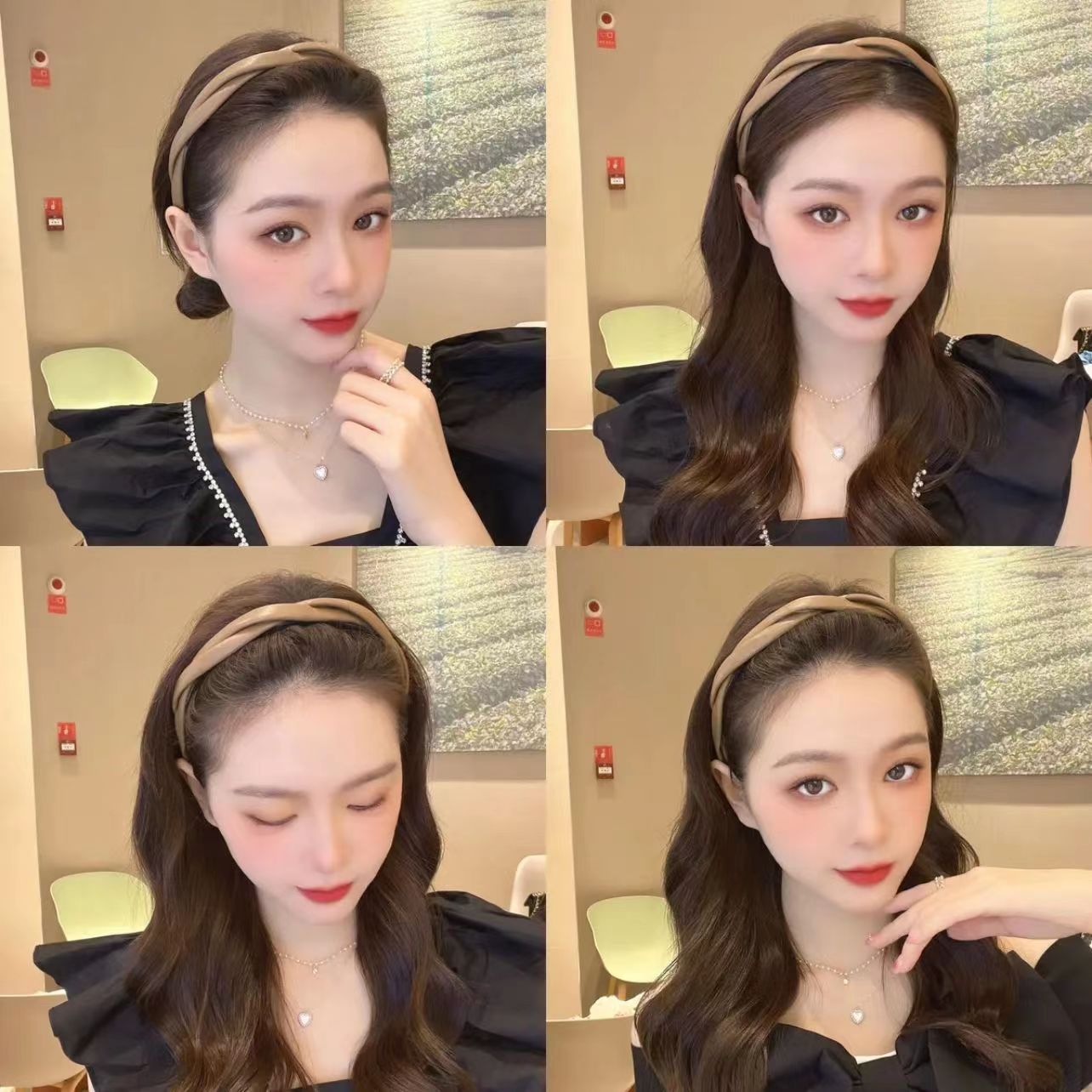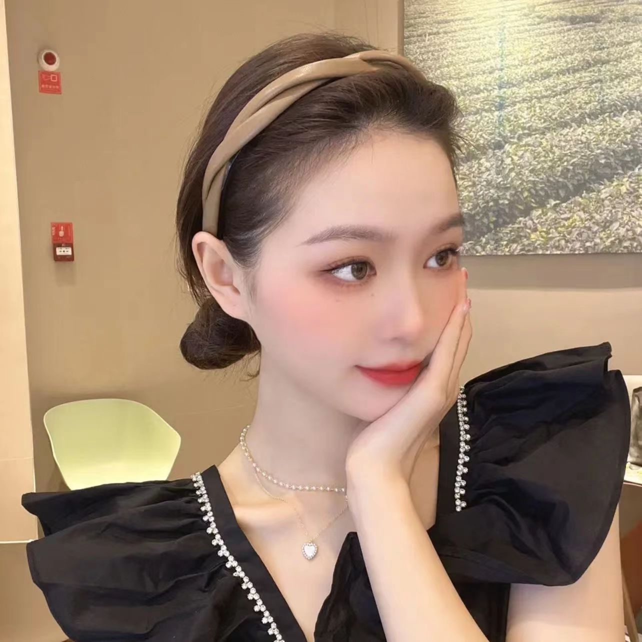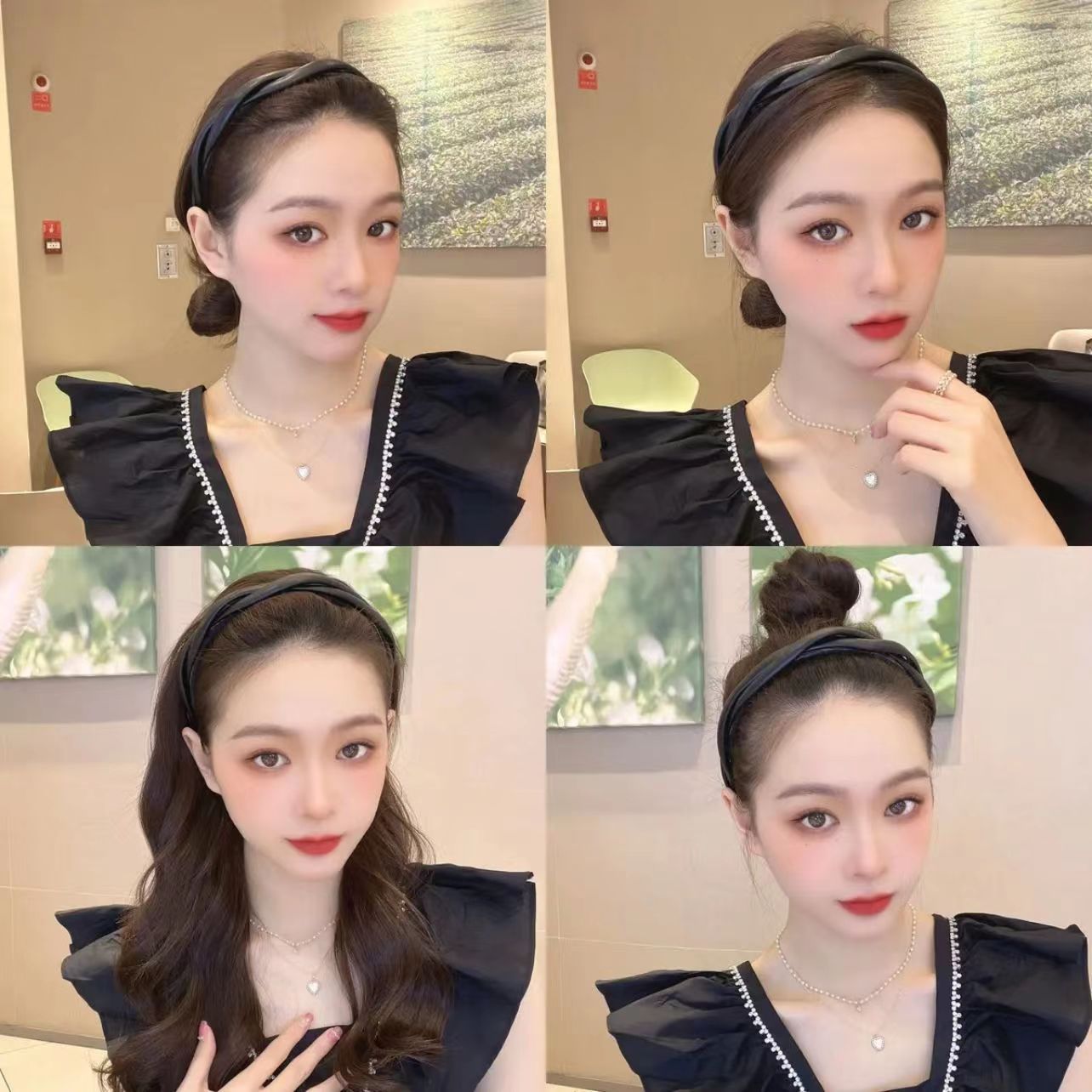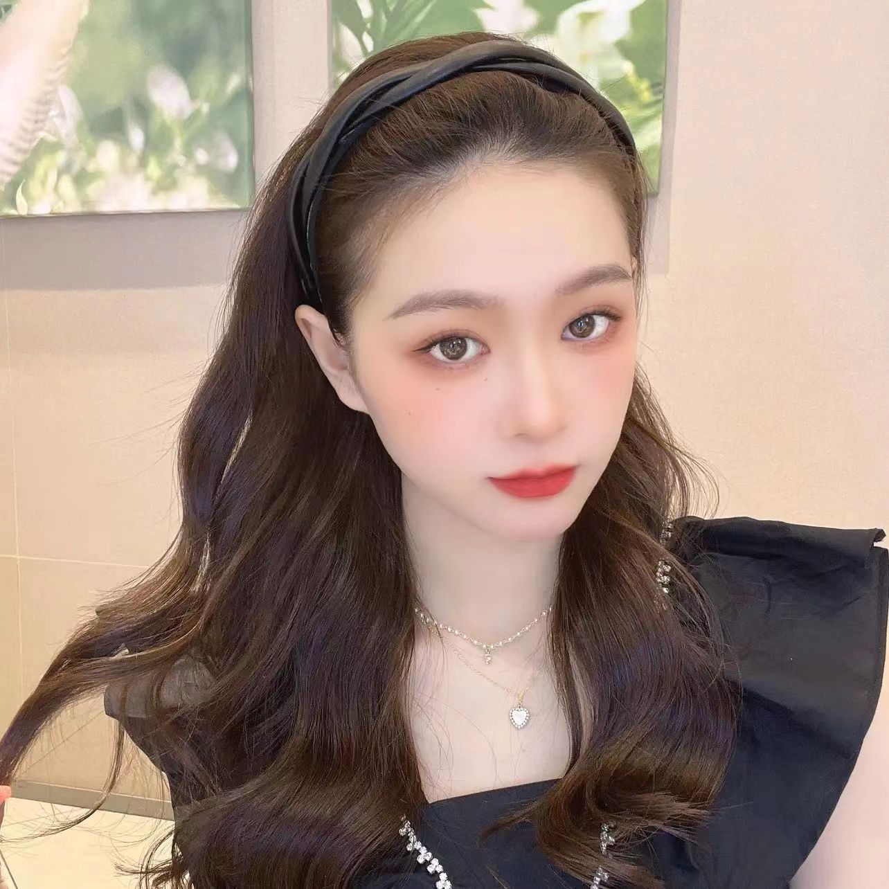 한국식 우아한 크로스 트위스트 가죽 머리띠 고급 단색 심플 모든 매치 나가는 머리띠 레트로 pu 헤어 클립스토어 가기