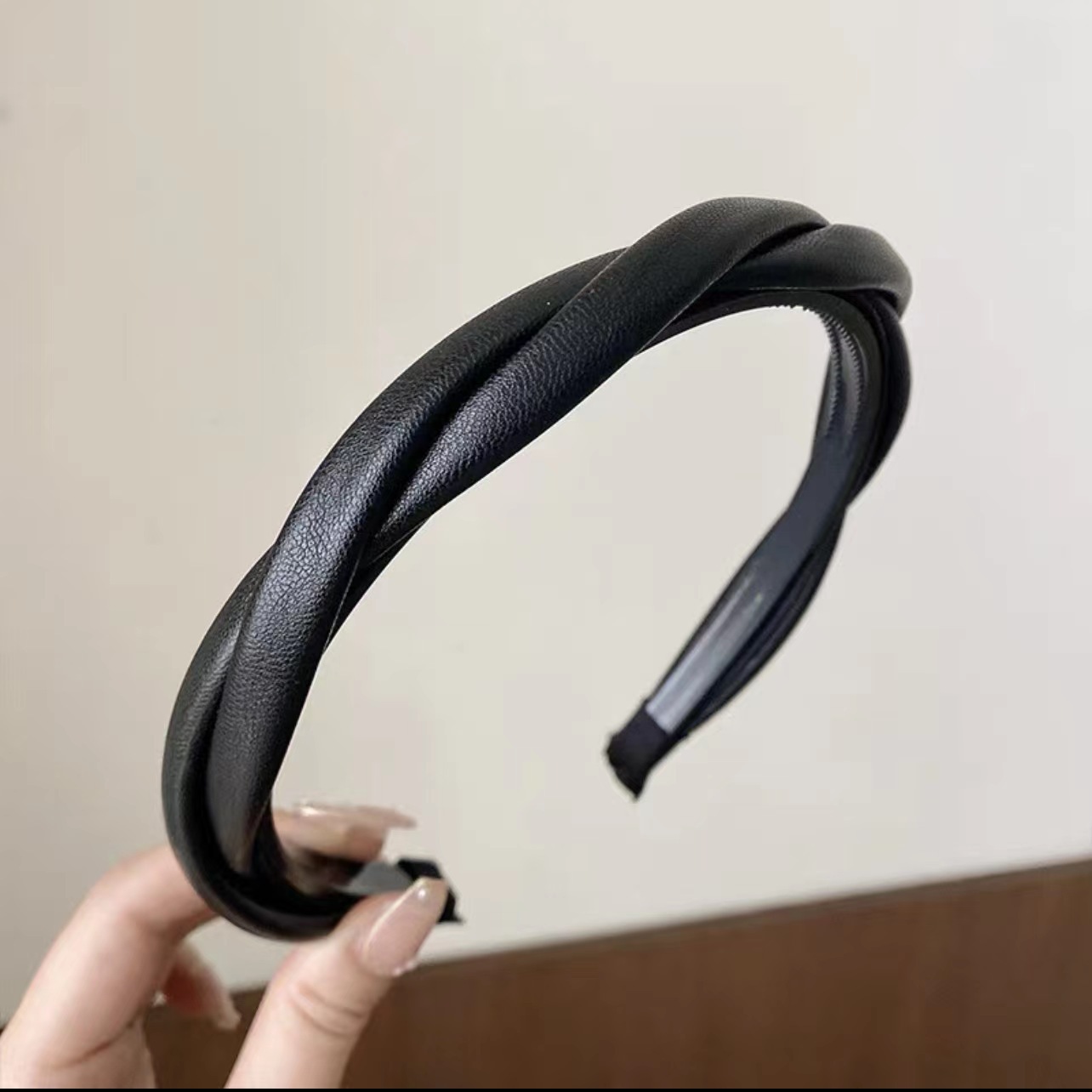 한국식 우아한 크로스 트위스트 가죽 머리띠 고급 단색 심플 모든 매치 나가는 머리띠 레트로 pu 헤어 클립