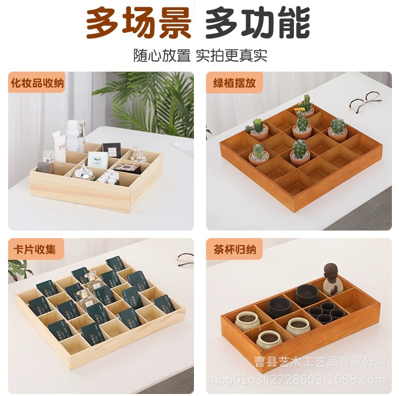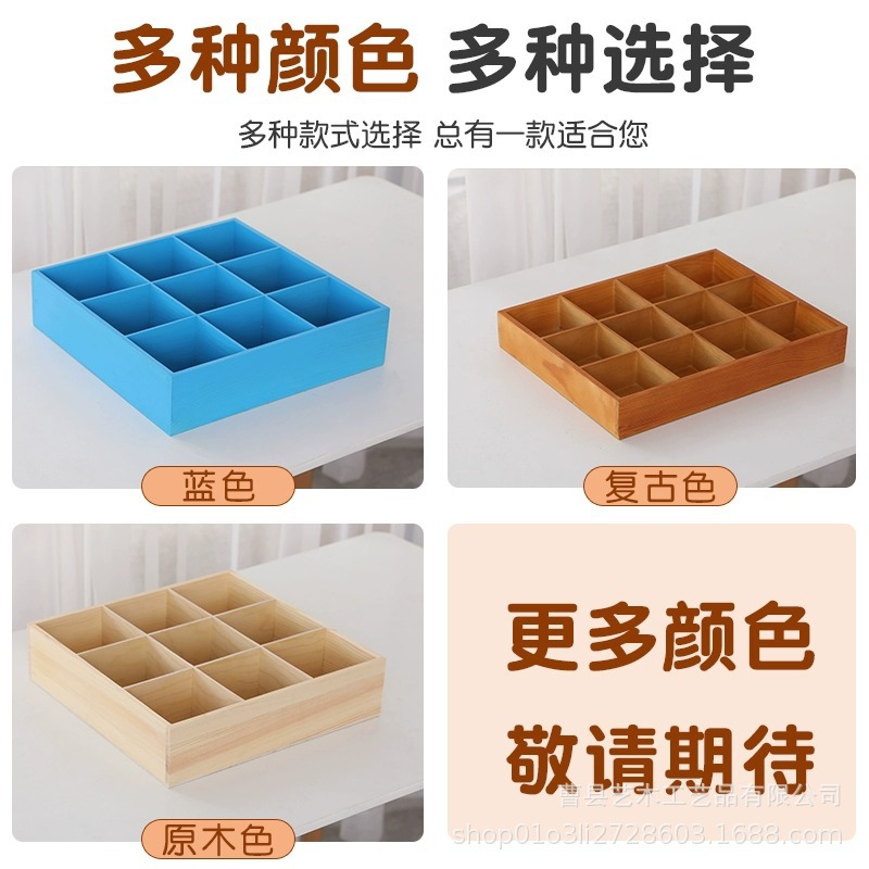 단단한 나무 창조적 인 격자 보관함 손님 나무 Jiugong 격자 잡화 상자 거실 데스크탑 잡화 보관 나무 상자스토어 가기