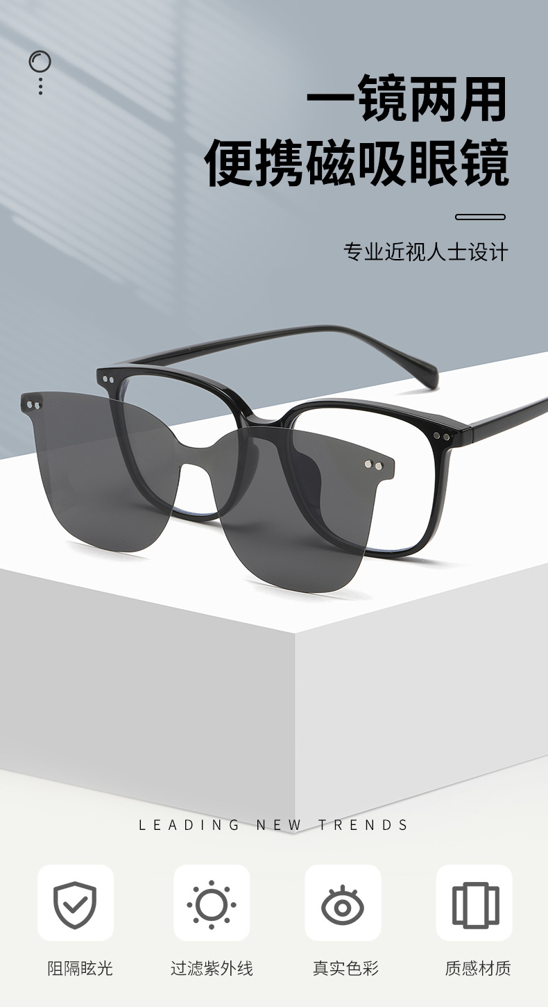 자기 안경 근시 남성용 TR 초경량 편광 낚시 운전 투인원 이중 사용 선글라스 여성용 선글라스