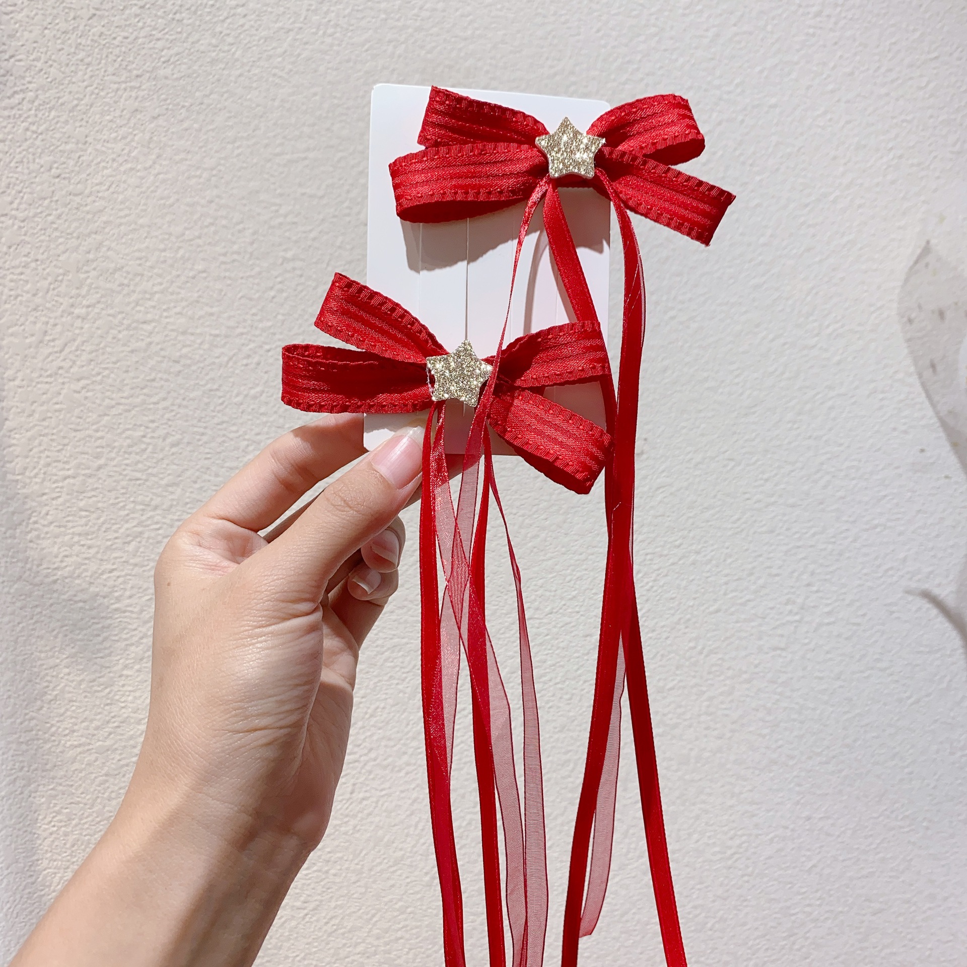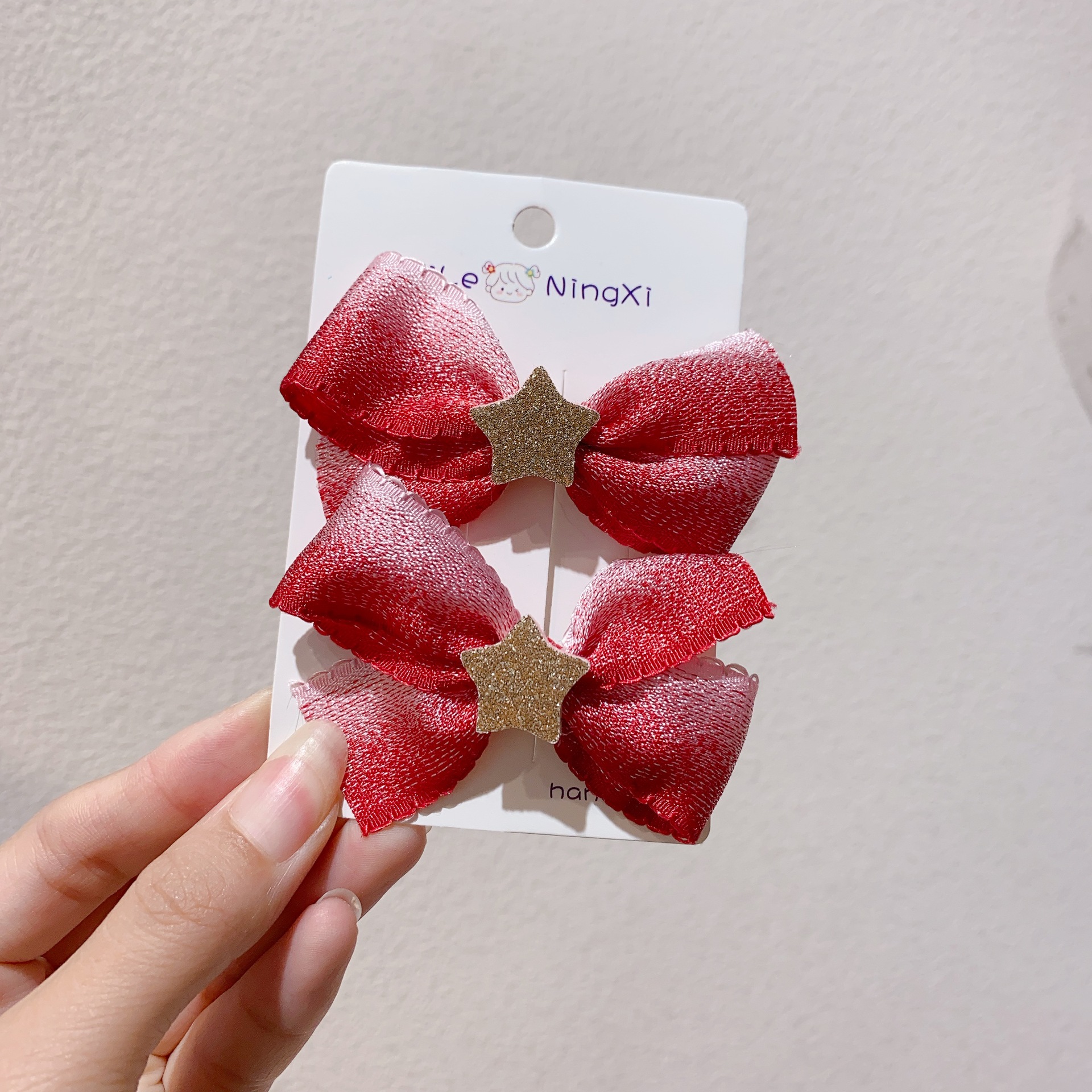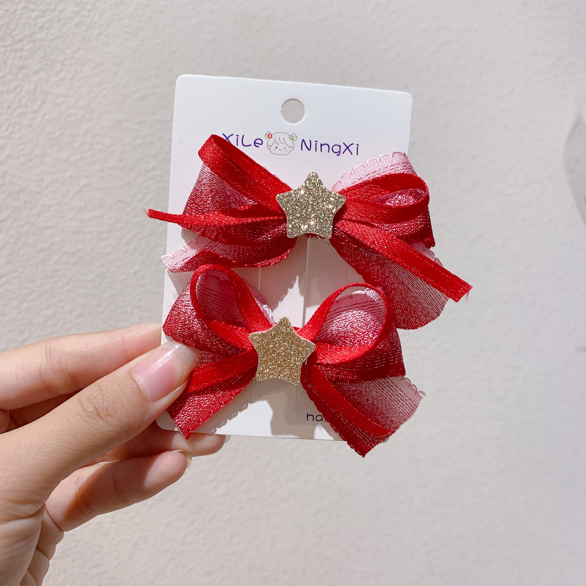 새로운 빨간 점진적 리본 활 별 쌍 리본 오리 클립 사이드 클립 새해 머리핀스토어 가기