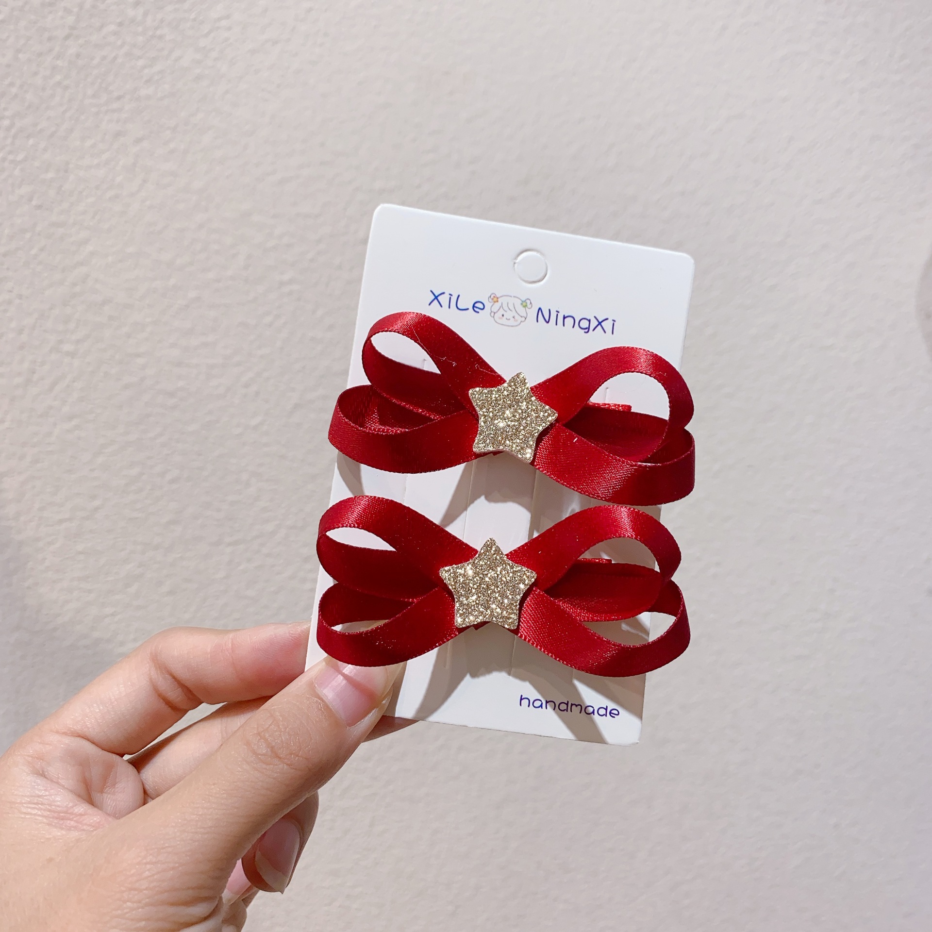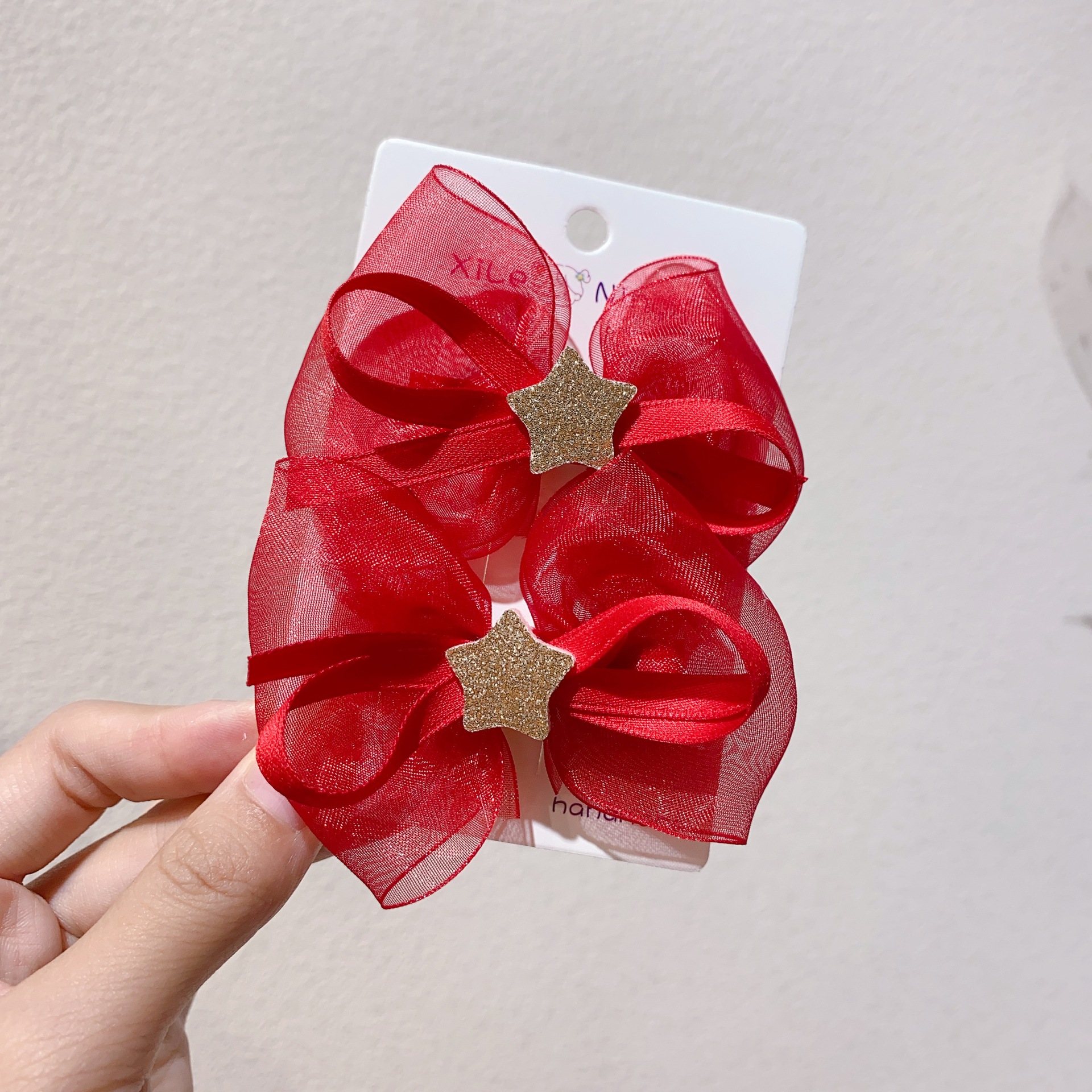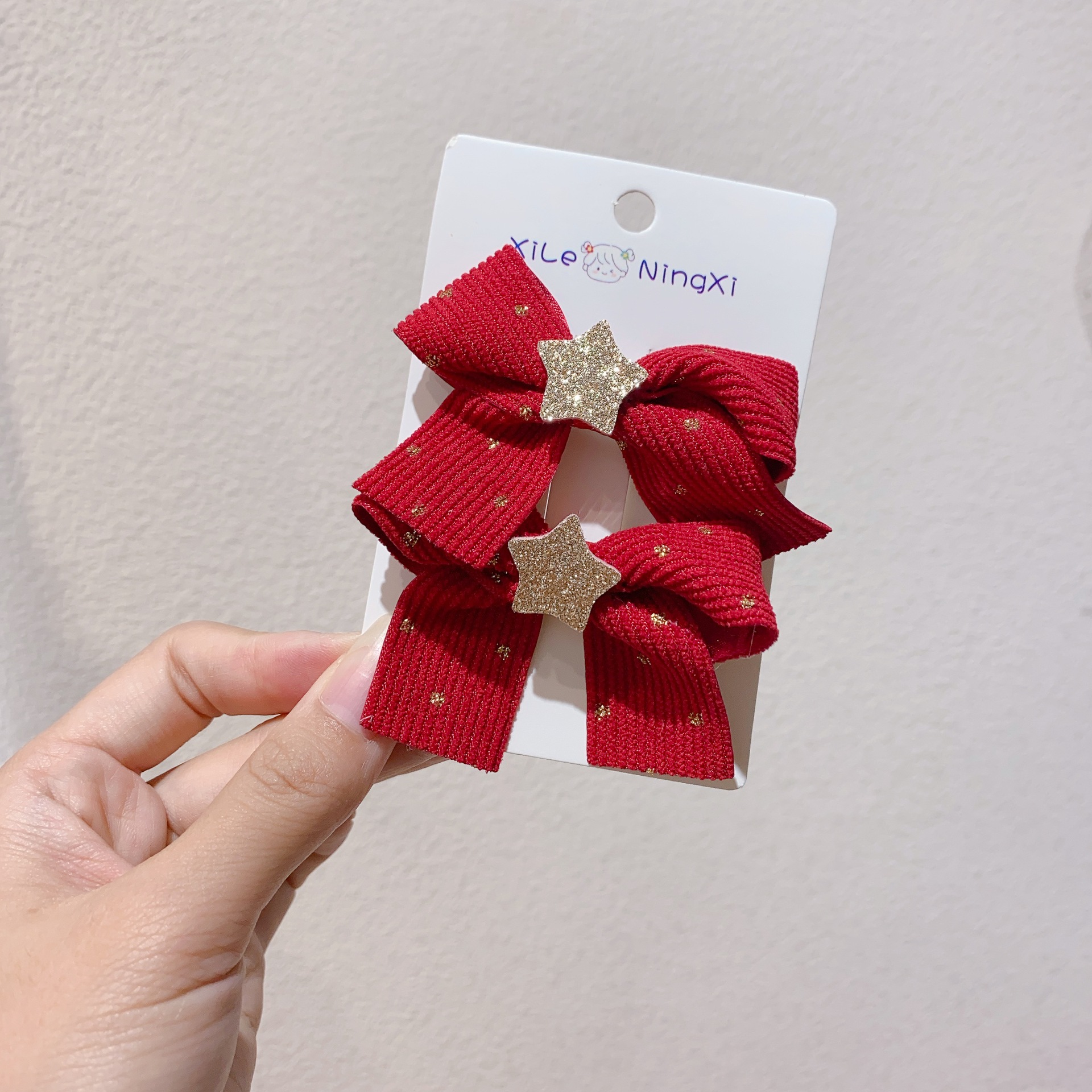 새로운 빨간 점진적 리본 활 별 쌍 리본 오리 클립 사이드 클립 새해 머리핀스토어 가기