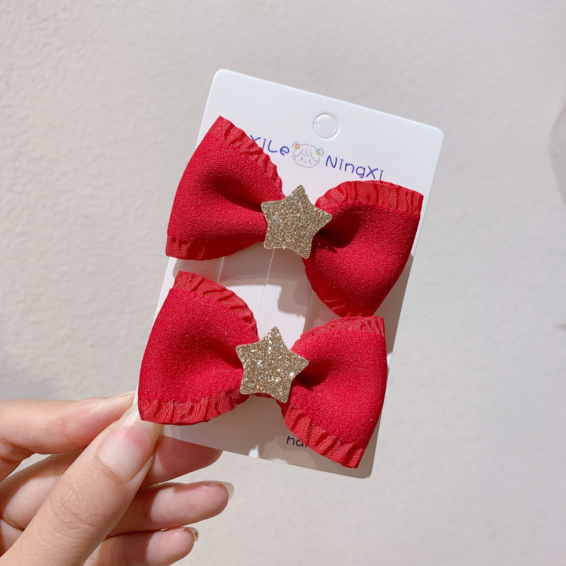 새로운 빨간 점진적 리본 활 별 쌍 리본 오리 클립 사이드 클립 새해 머리핀