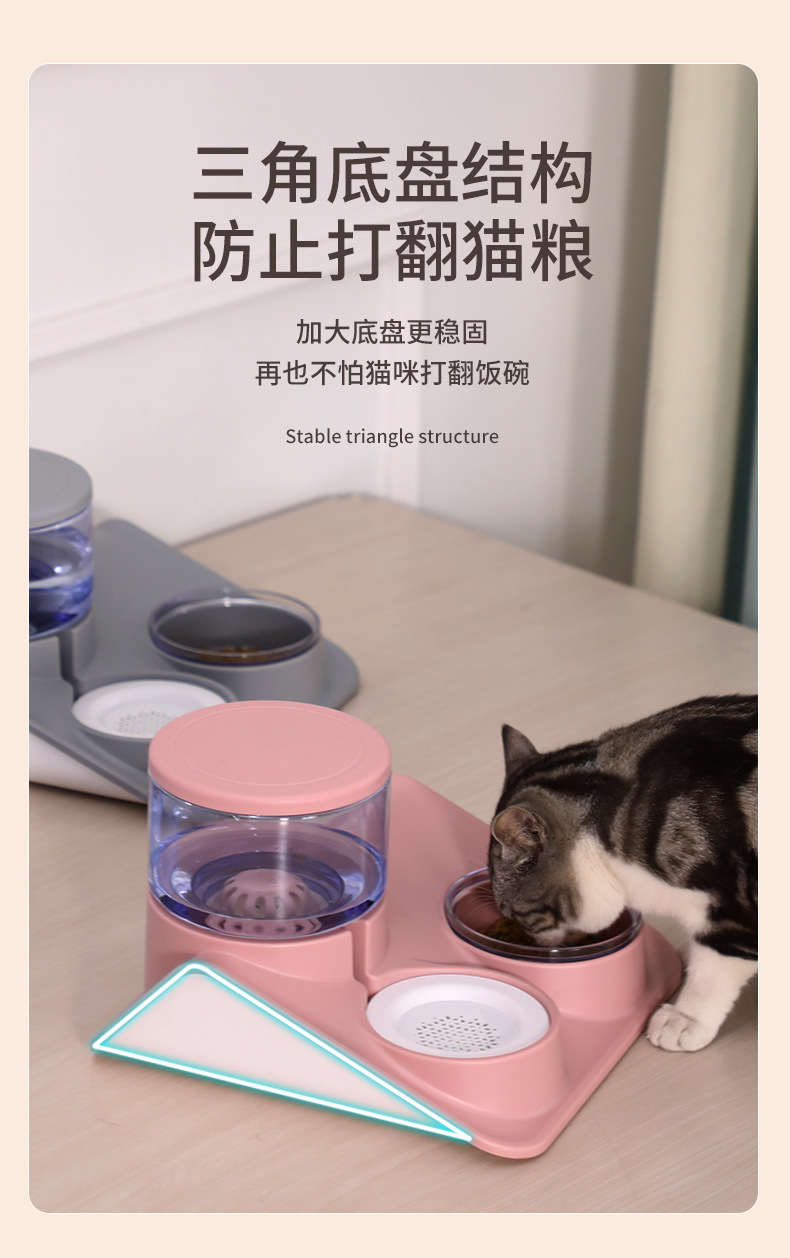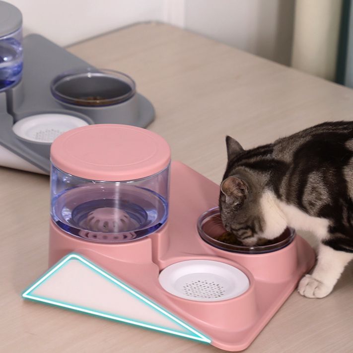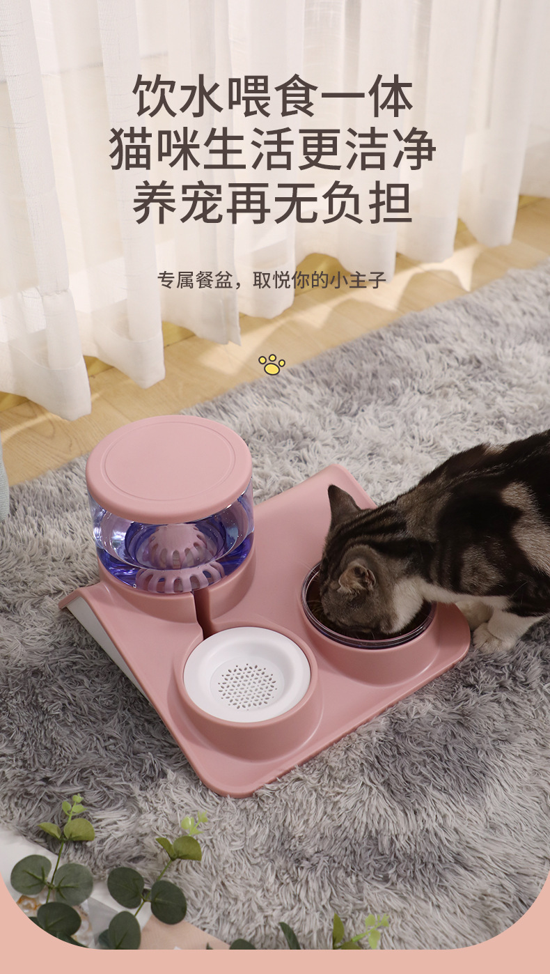 애완 동물 먹이 그릇 고양이 강아지 먹이 분지 일체형 이중 그릇 고양이 그릇 개 그릇 자동 물 공급 장치