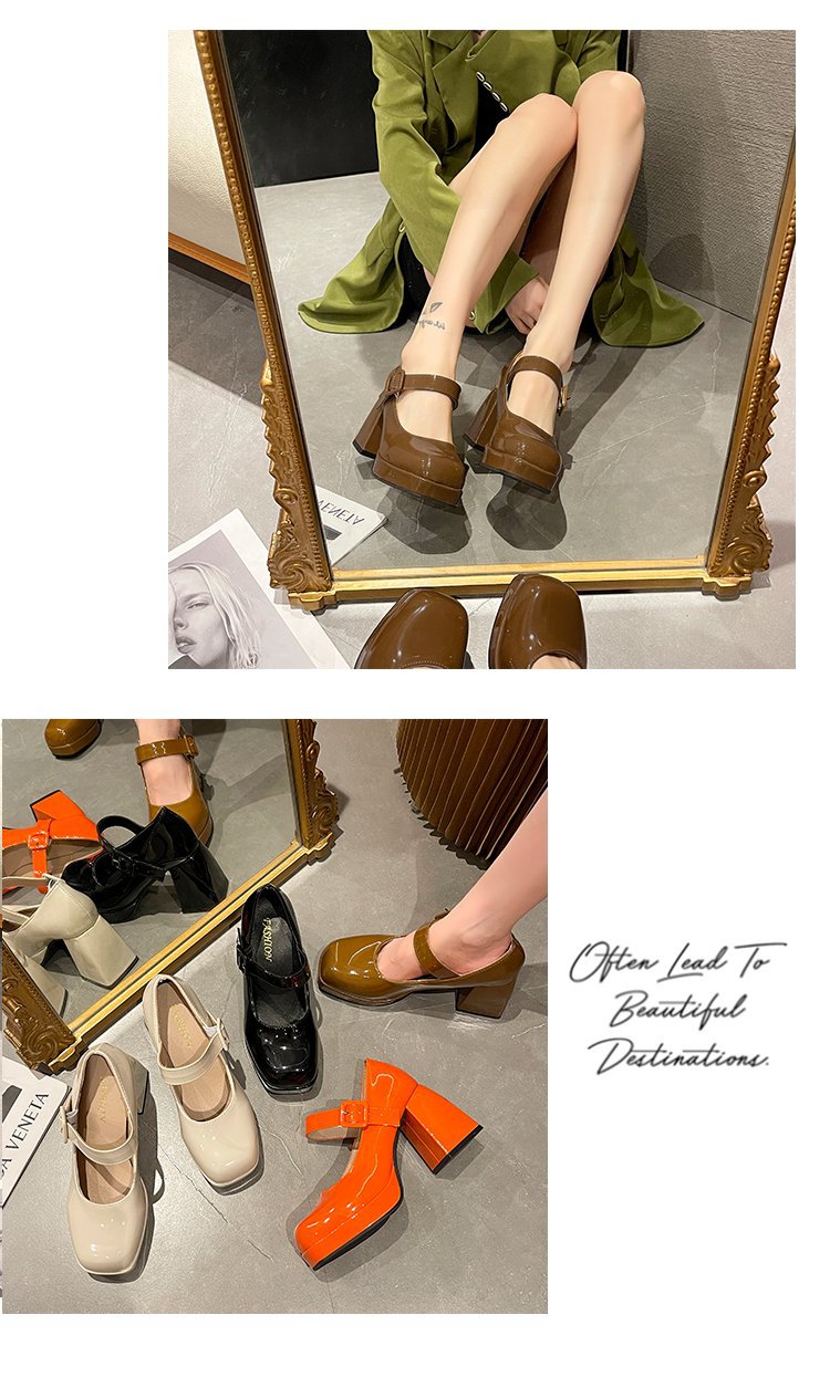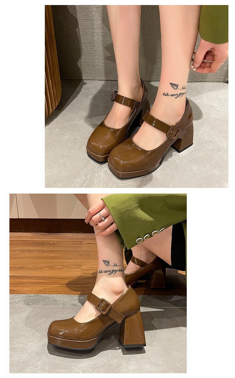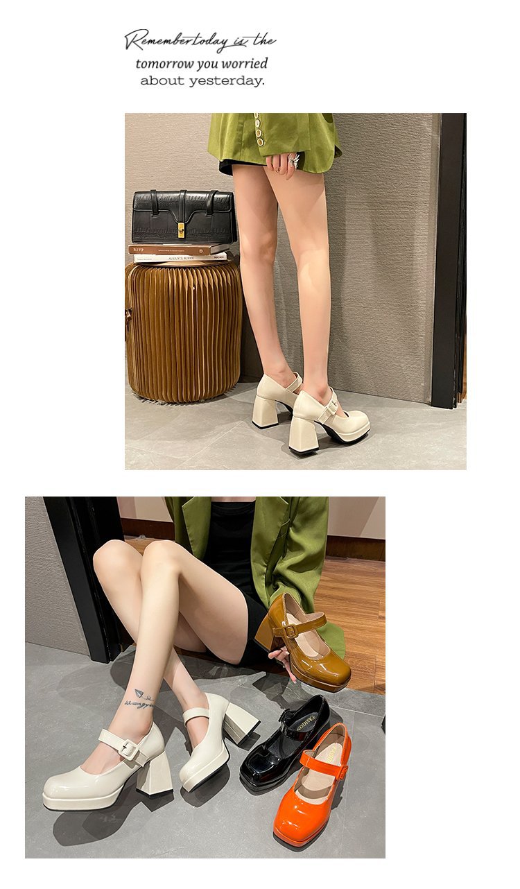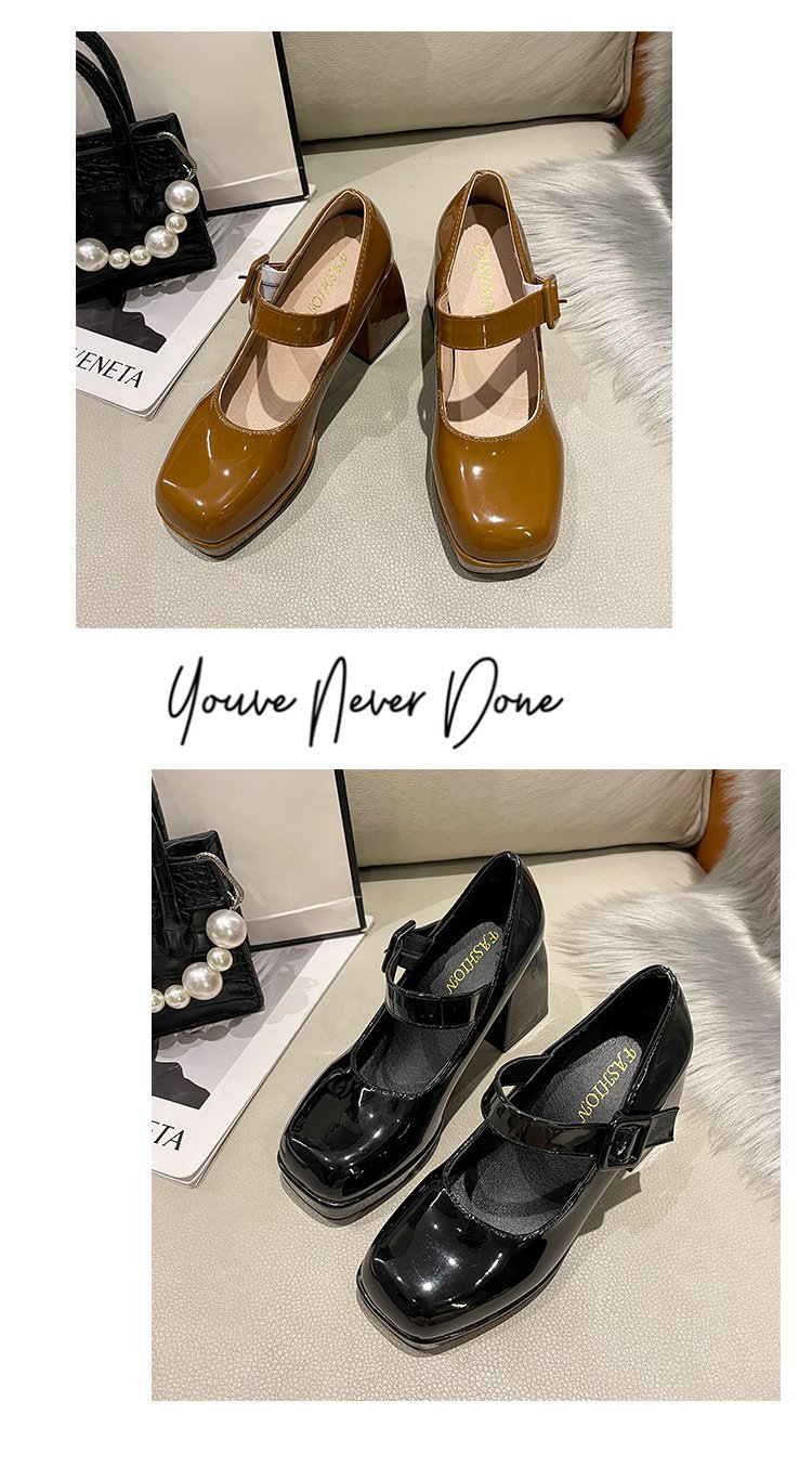 프랑스 스타일 우아한 두꺼운 굽 레트로 단층 신발 여성용 2023 가을 새로운 밝은 얕은 입 학생 메리 제인 여성용 작은 가죽 신발스토어 가기