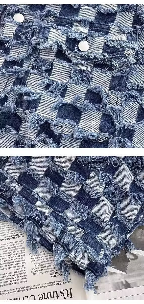 남성과 여성을위한 체스 판 격자 무늬 데님 재킷 봄과 가을 미국 스타일 하이 스트리트 인스 타 그램 인기있는 브랜드 복고풍 디자인 감각 느슨한 재킷