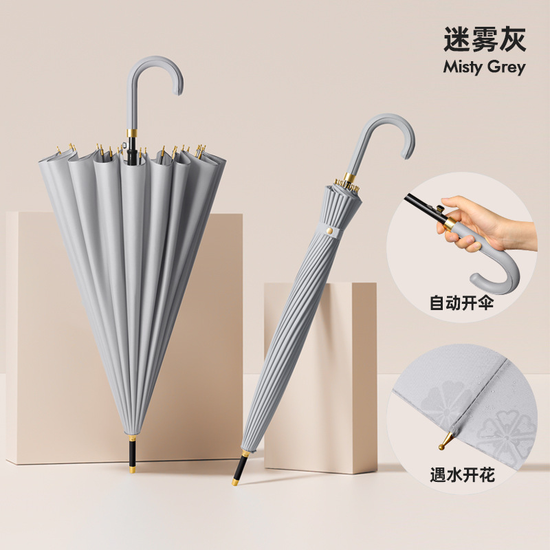 • 24 뼈 스트레이트 막대 물 자동 우산 JY 다크 그레이 꽃