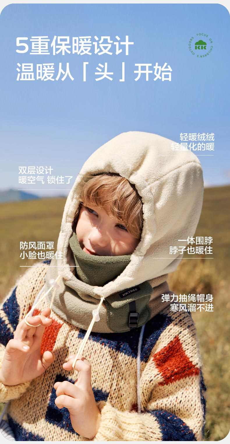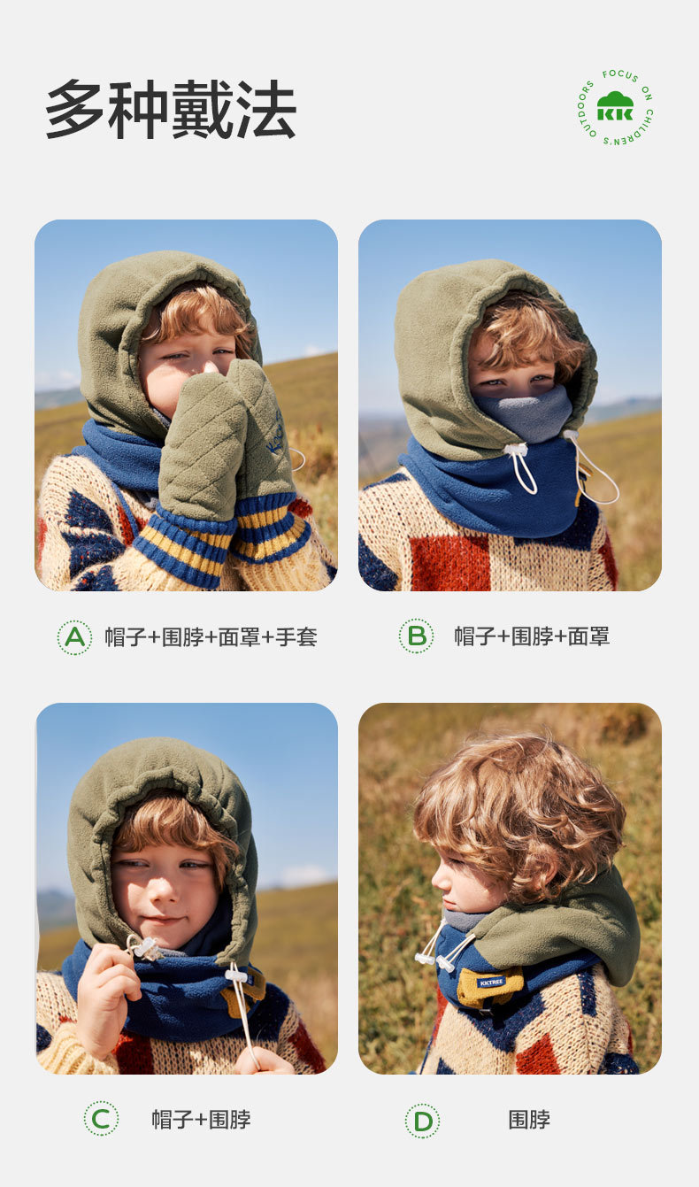 KK 나무 귀여운 얼굴 따뜻한 어린이 모자와 스카프 통합 방풍 마스크 남성과 여성 아기 클래스 A 정전기 방지 가을, 겨울