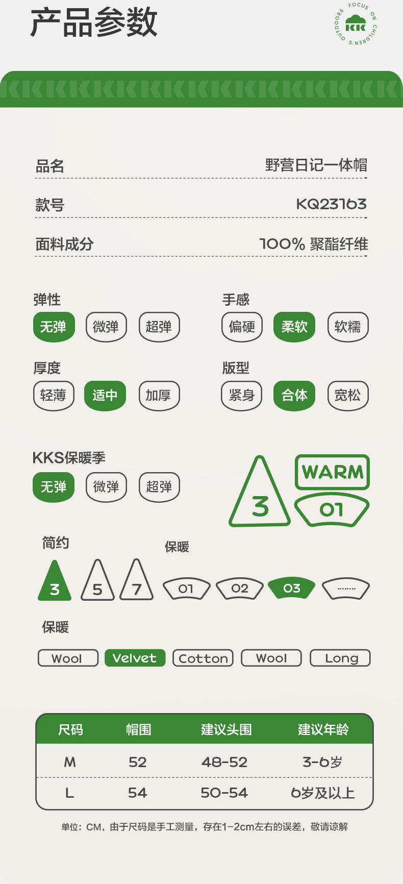 • M 코드: 권장 머리 둘레 48-52cm; 권장 연령 2-6 세