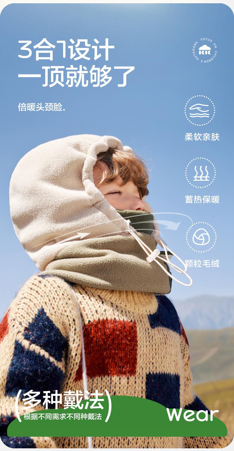 KK 나무 귀여운 얼굴 따뜻한 어린이 모자와 스카프 통합 방풍 마스크 남성과 여성 아기 클래스 A 정전기 방지 가을, 겨울스토어 가기