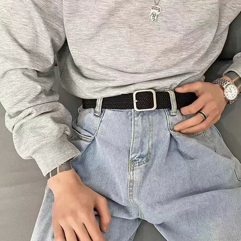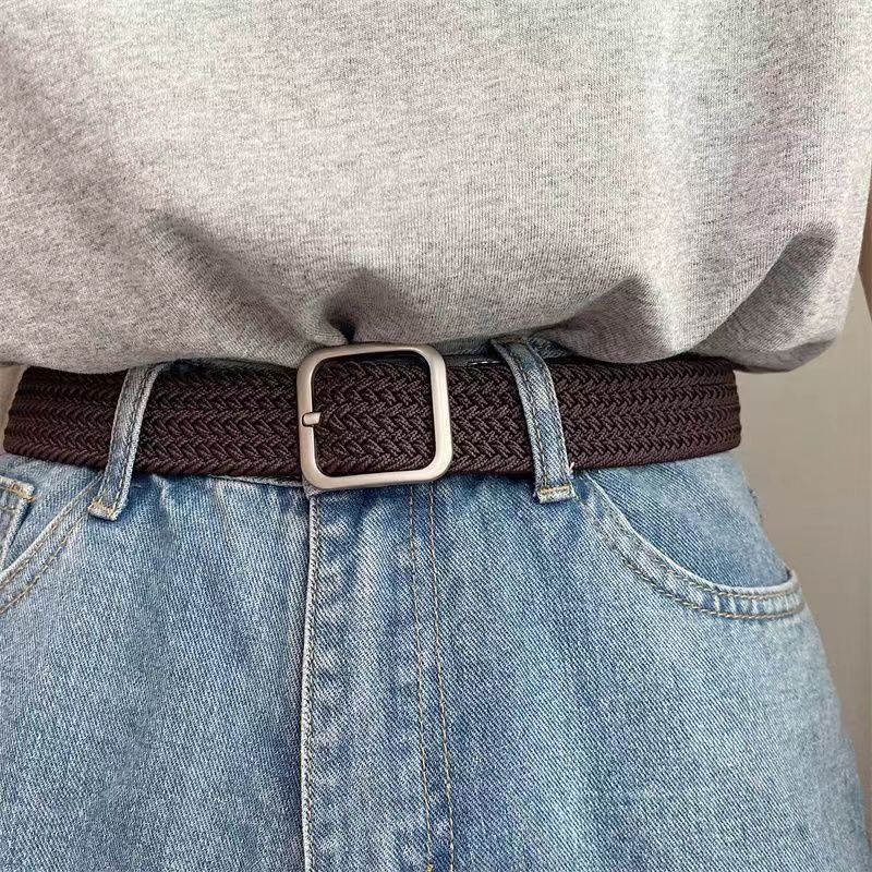 인터넷 인기 짠 청바지 여성과 남성의 캔버스 벨트 여성의 모든 매치 탄성 레이지 블랙 모든 매치 하이 엔드 가죽 벨트스토어 가기
