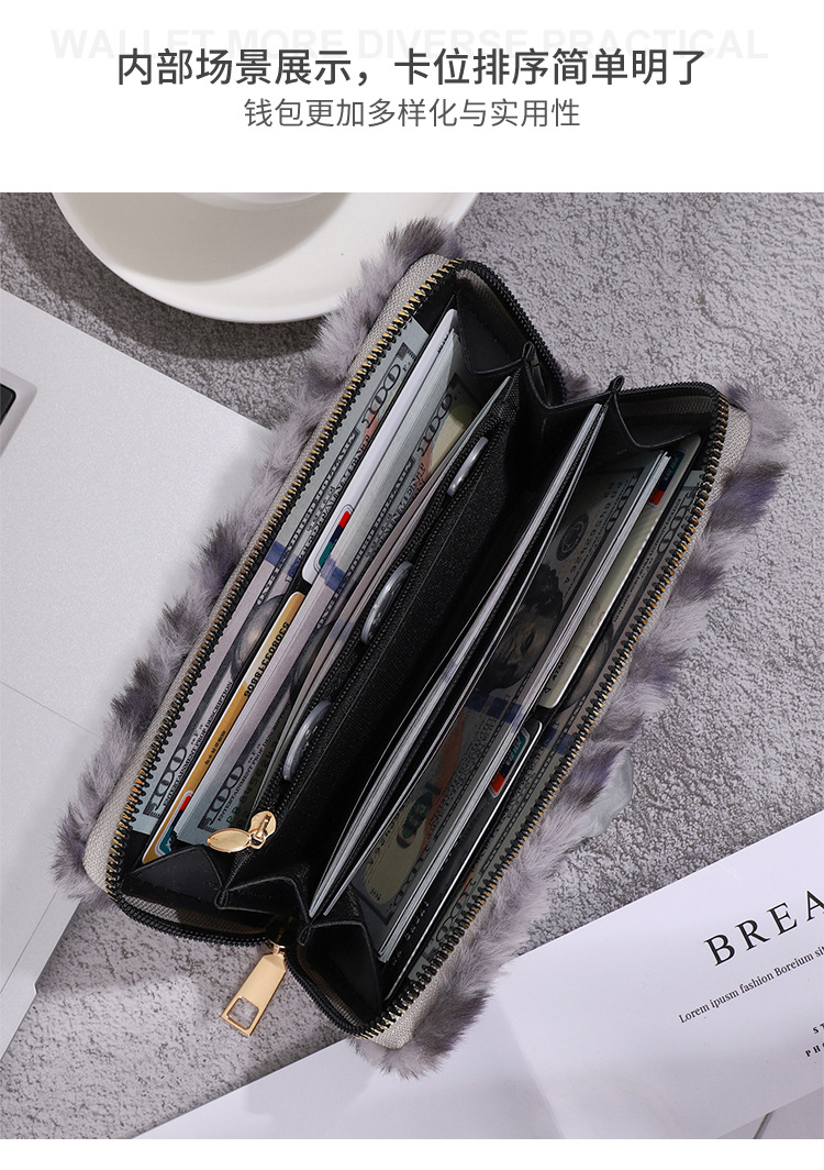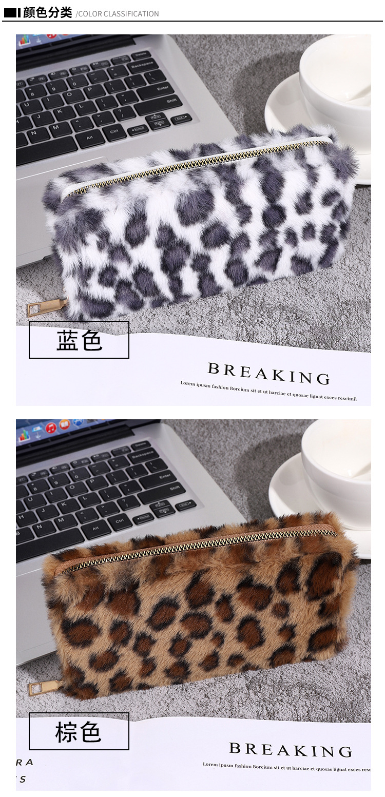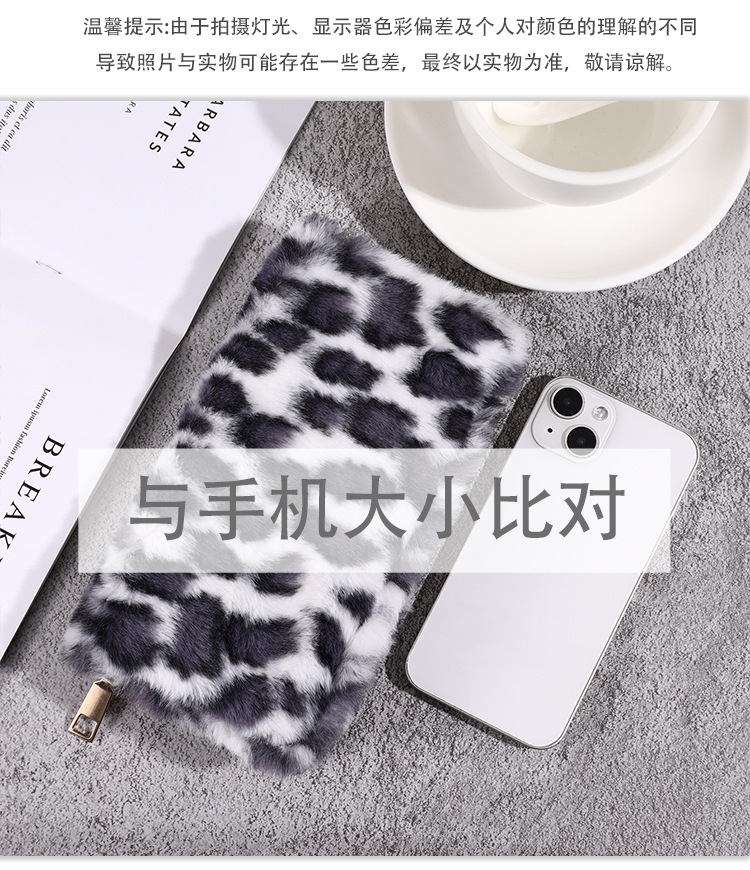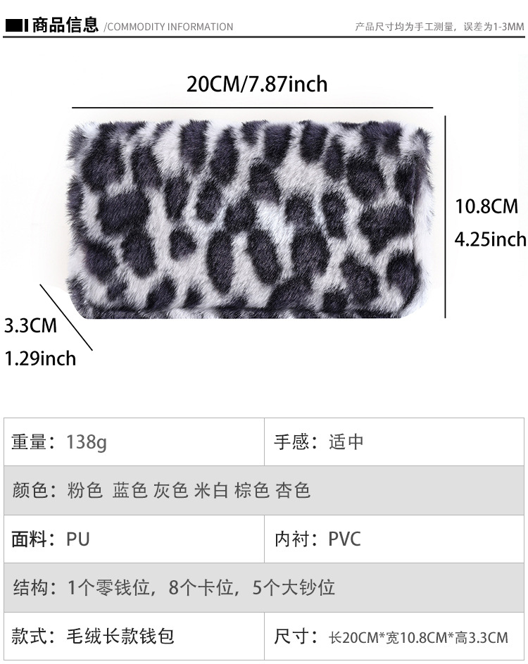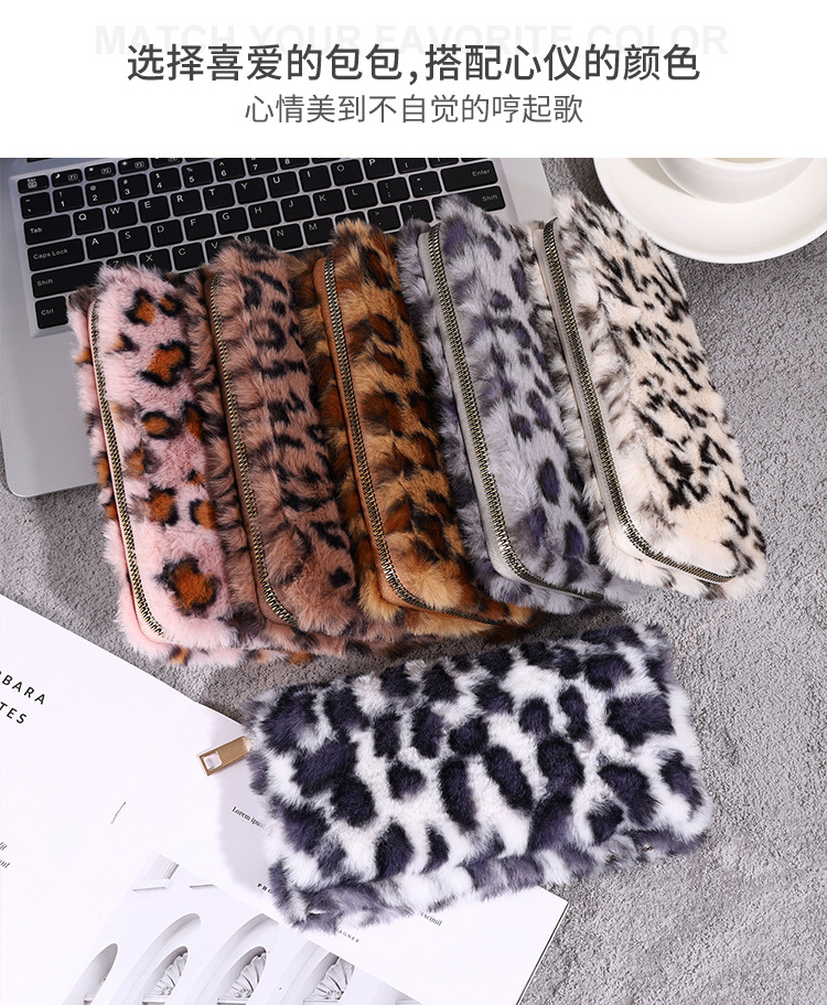 2024년 크로스보더 레오파드 프린트 플러시 지갑, 개성 있는 심플한 털가방, 휴대용 수납 클러치백 카드홀더스토어 가기