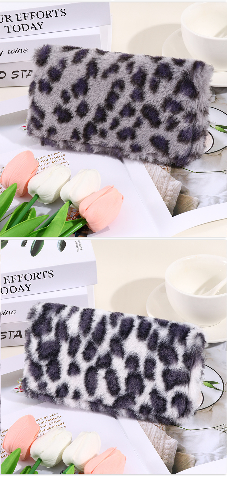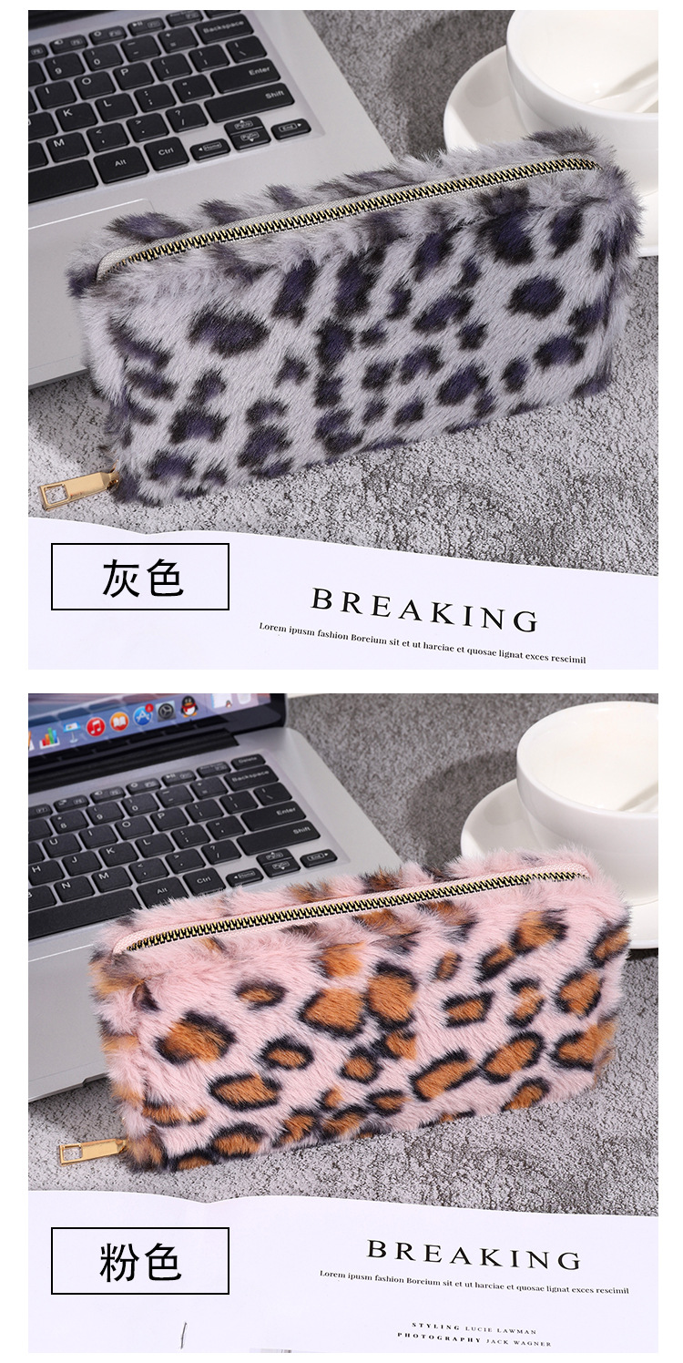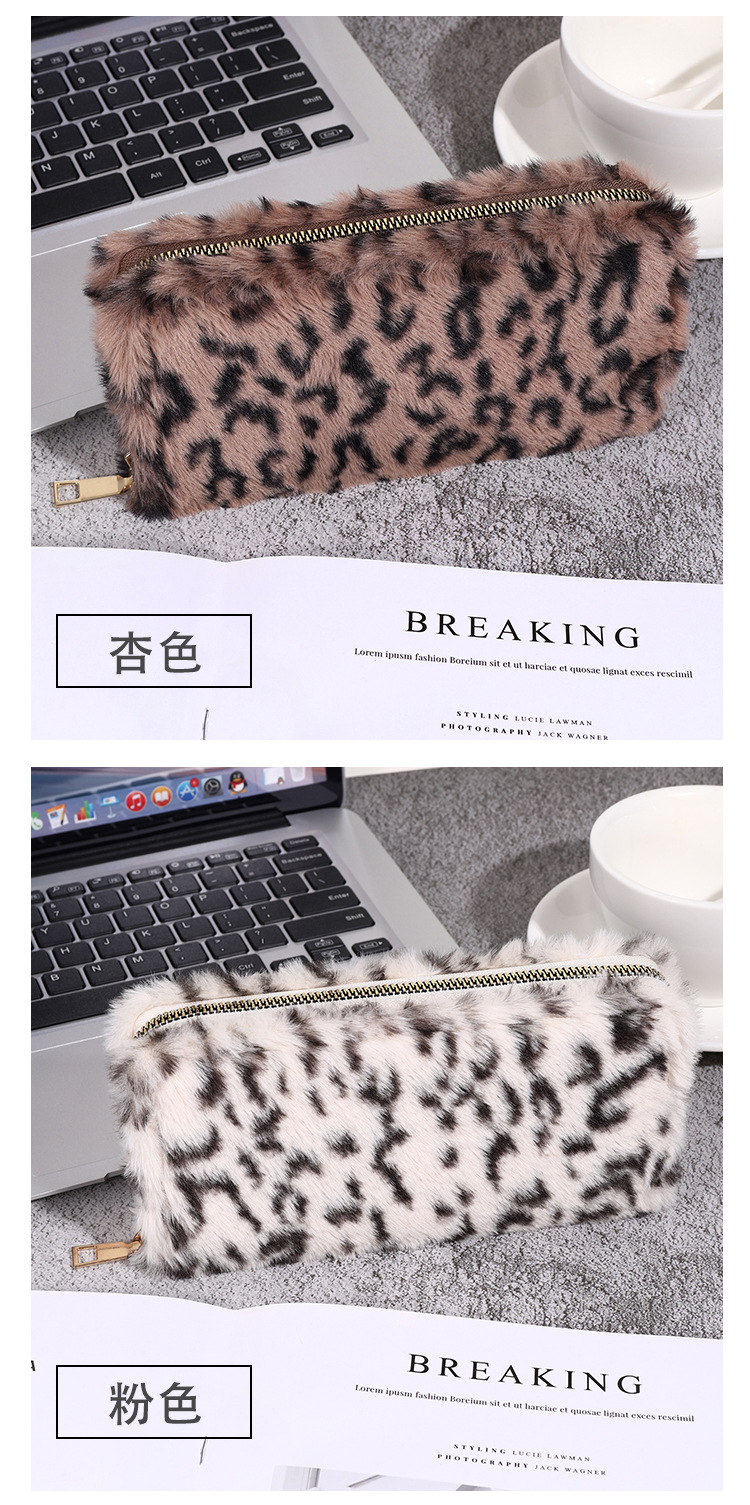 2024년 크로스보더 레오파드 프린트 플러시 지갑, 개성 있는 심플한 털가방, 휴대용 수납 클러치백 카드홀더스토어 가기