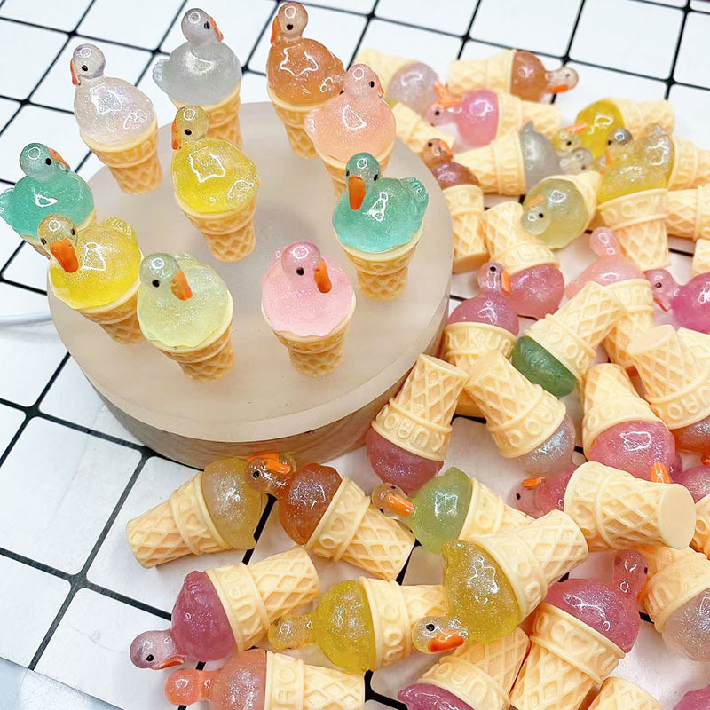 크리에이 티브 발광 미세 플래시 아이스크림 오리 DIY 크림 젤 휴대 전화 케이스 미니어처 입체 장식품 보석 액세서리