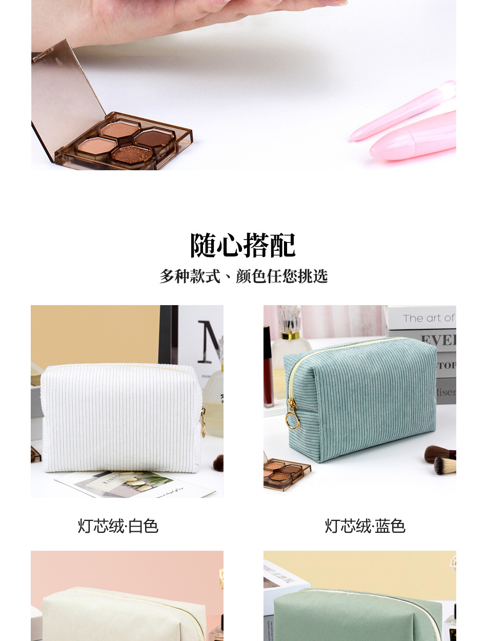外贸灯芯绒女士八角化妆包 大容量便携手拎收纳袋 旅行洗漱包批发