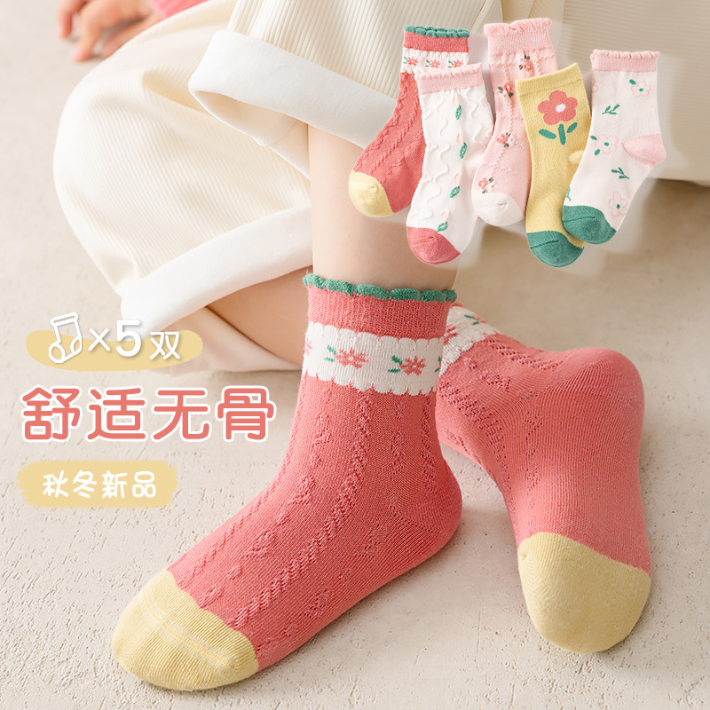 新款宝宝袜子春秋棉袜韩版婴儿中筒童袜儿童男童女童秋袜无骨冬季