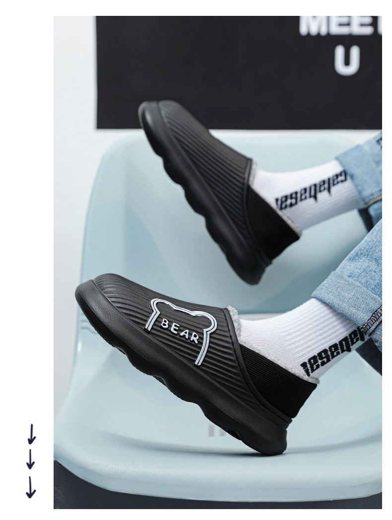 면 슬리퍼 남자의 가을과 겨울 실내 홈 기모 따뜻한 신발 에 똥 굽 면 신발 미끄럼 방지 플러스 사이즈 슬리퍼