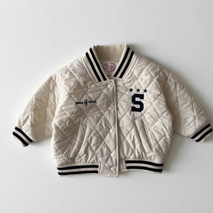 한국 스타일 남성과 여성 아기 기모 면 코트 겨울 야구 세트 영어 편지 따뜻한 유행 카디건 면 코트 재킷