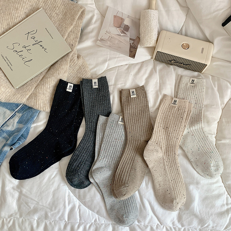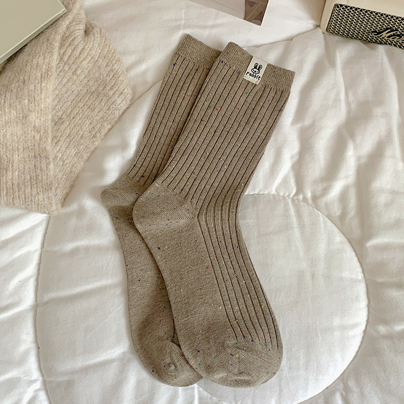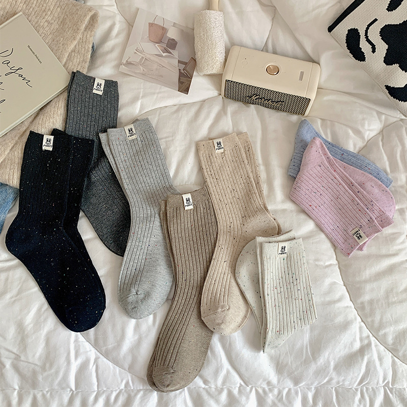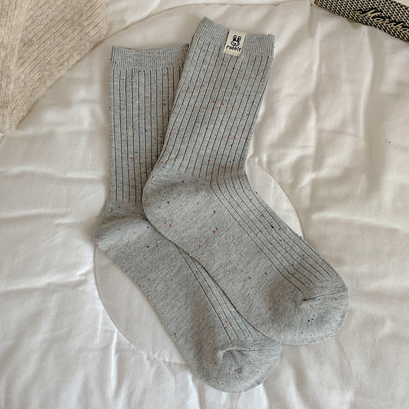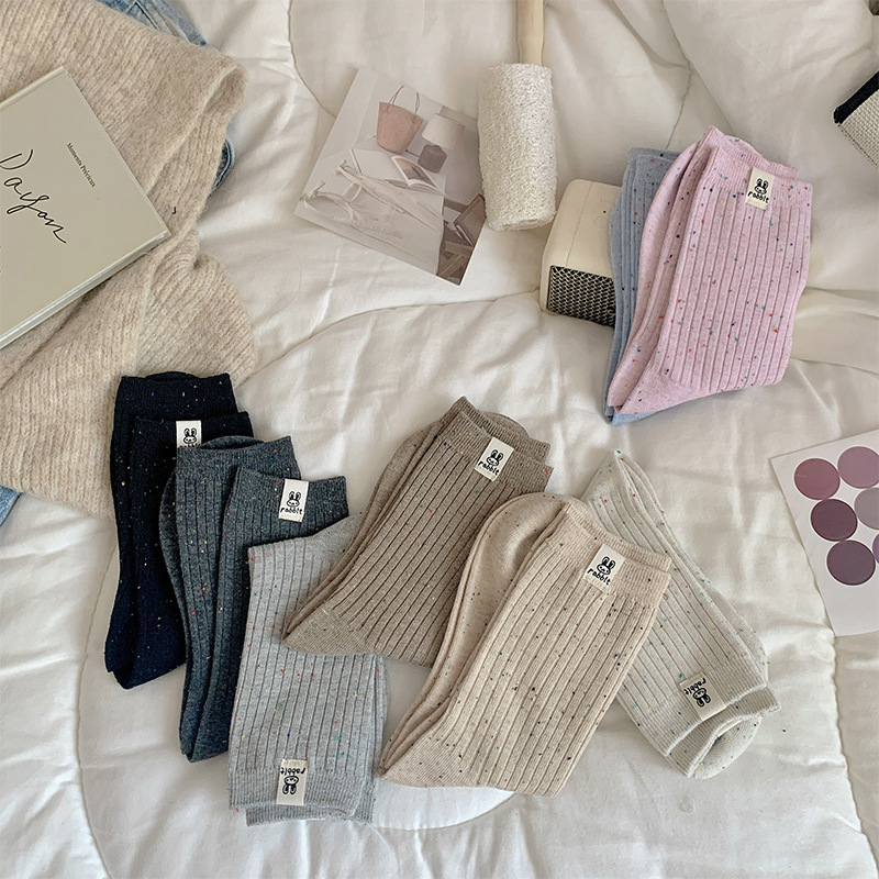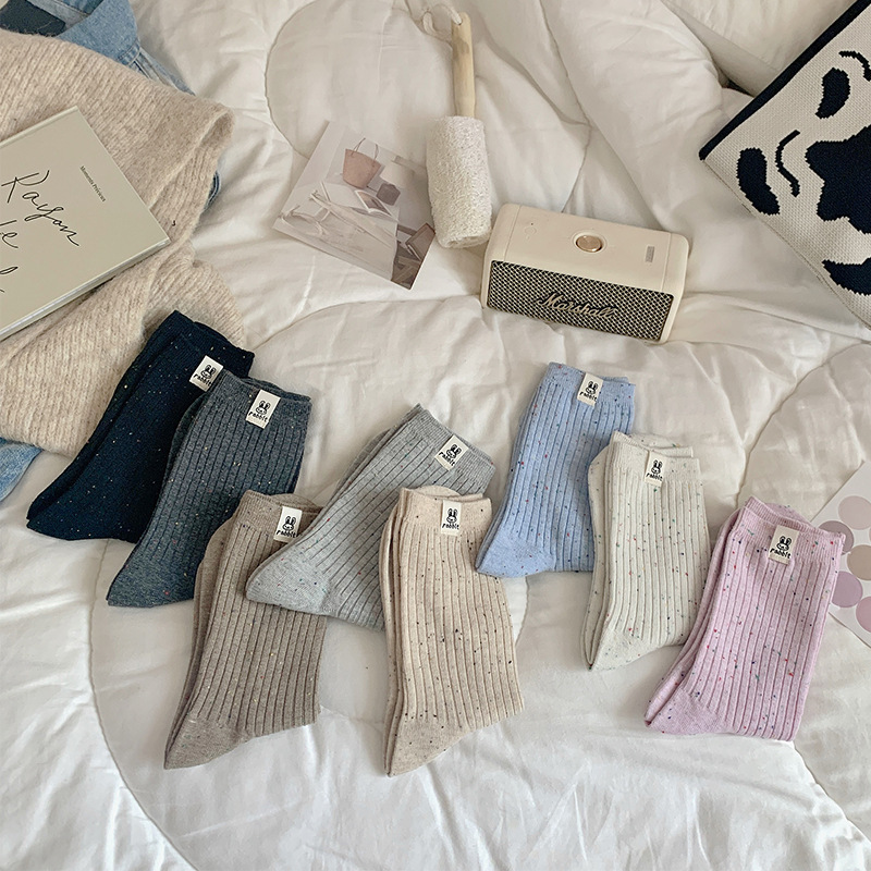천 라벨 양말 여성용 트렌디 한 봄과 가을 일본식 스포츠 스타일 스위트 웨어 포인트 원사 세로 스트립 더미 양말 가을과 겨울
