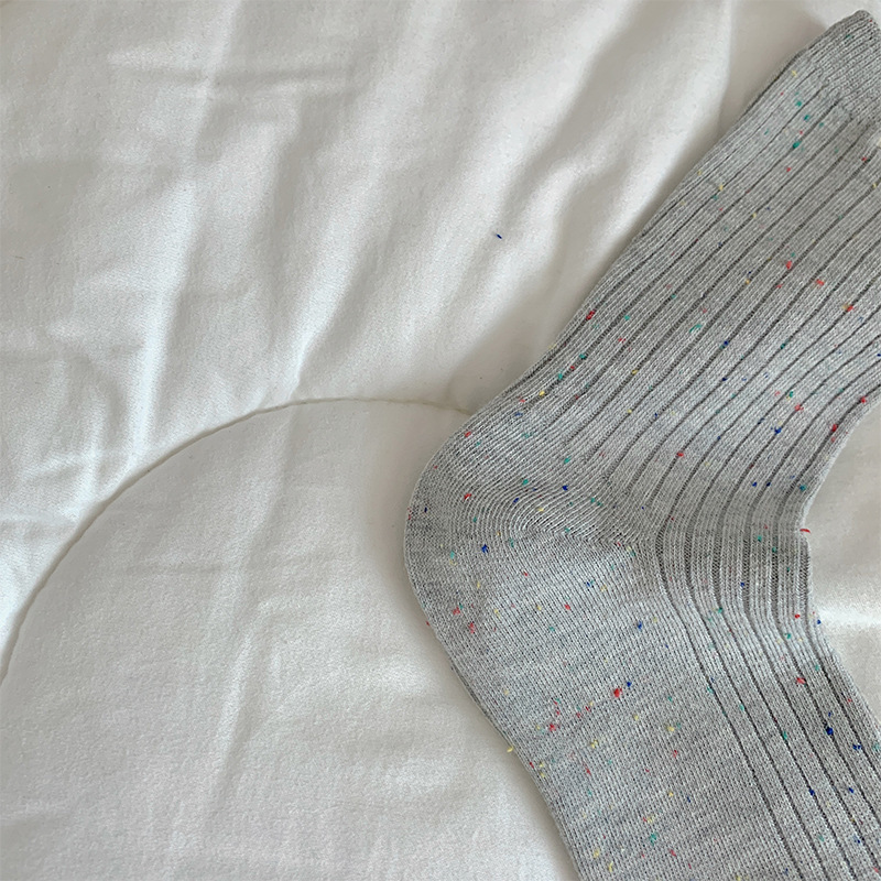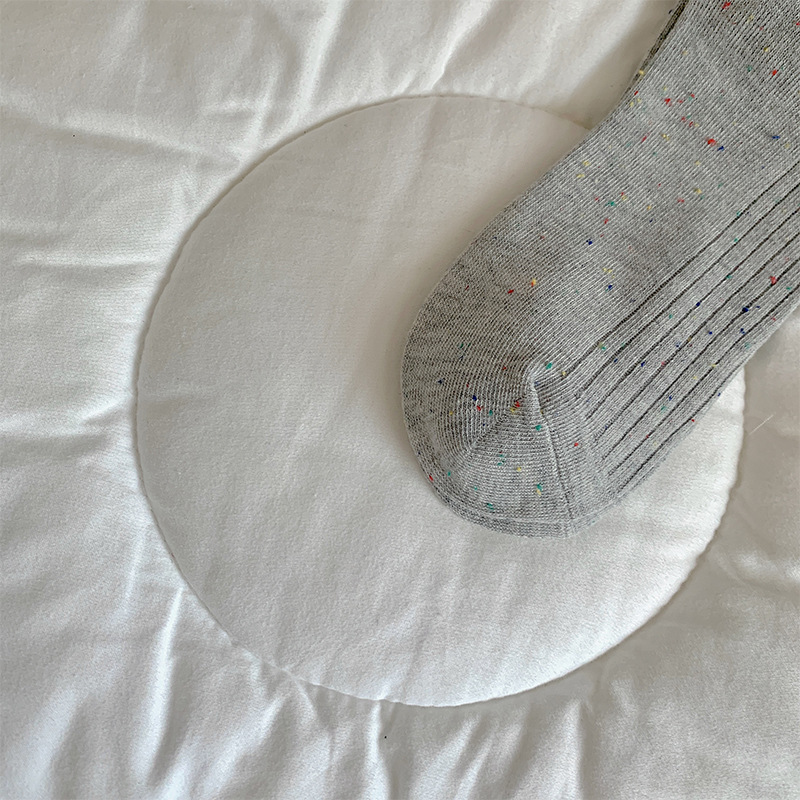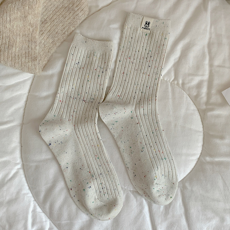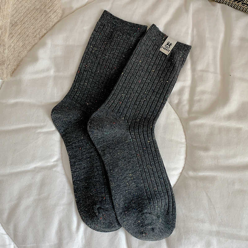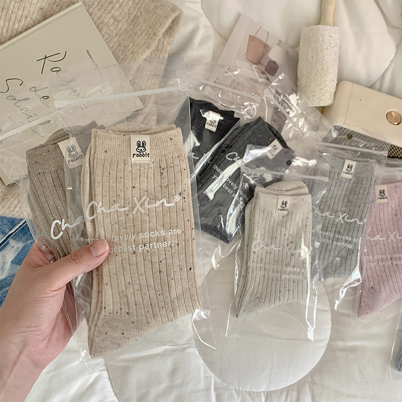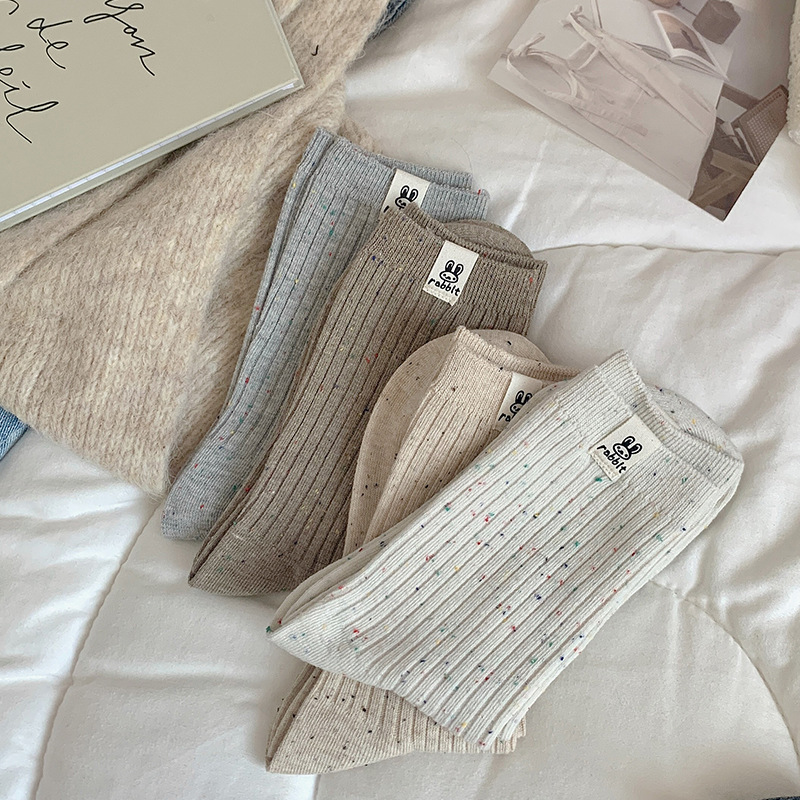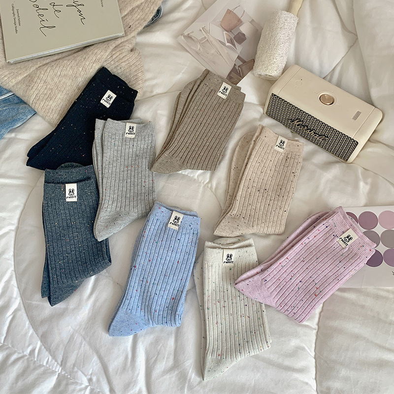 천 라벨 양말 여성용 트렌디 한 봄과 가을 일본식 스포츠 스타일 스위트 웨어 포인트 원사 세로 스트립 더미 양말 가을과 겨울