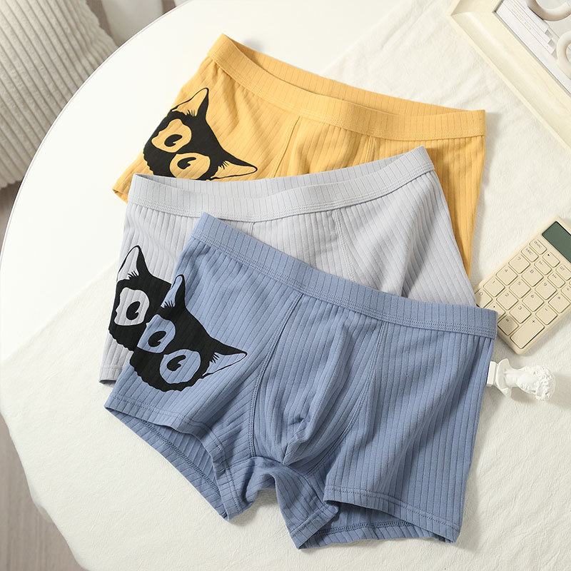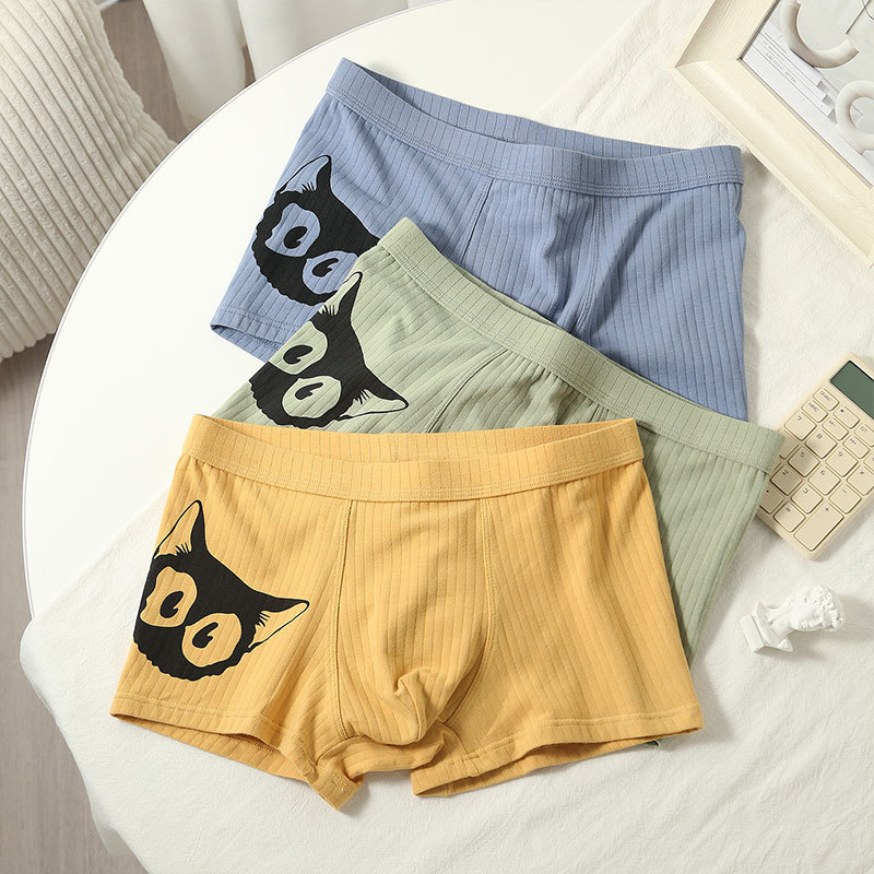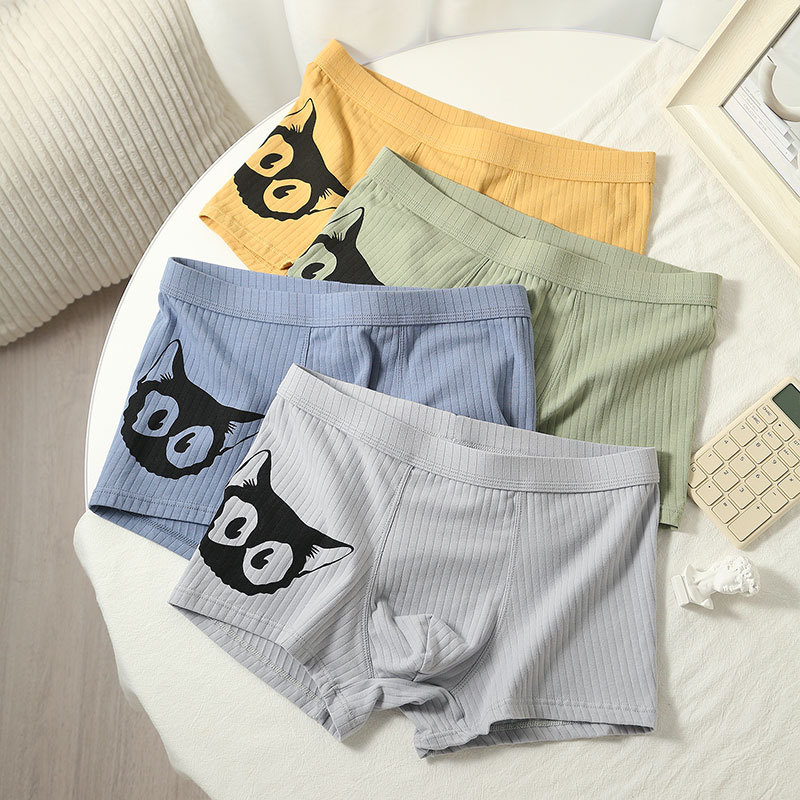 순수 코튼 속옷 소년 유행 인쇄 통기성 복서 팬티 만화 복서 팬티 겨울 중간 허리 남자 속옷스토어 가기