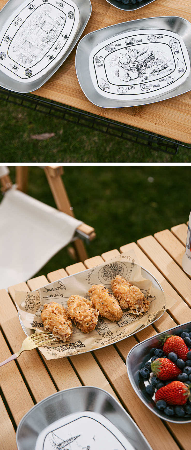 야외 식기 캠핑 휴대용 접시 피크닉 장비 과일 접시 튀김 치킨 튀김 미국 빈티지 틴플레이트 플레이트스토어 가기