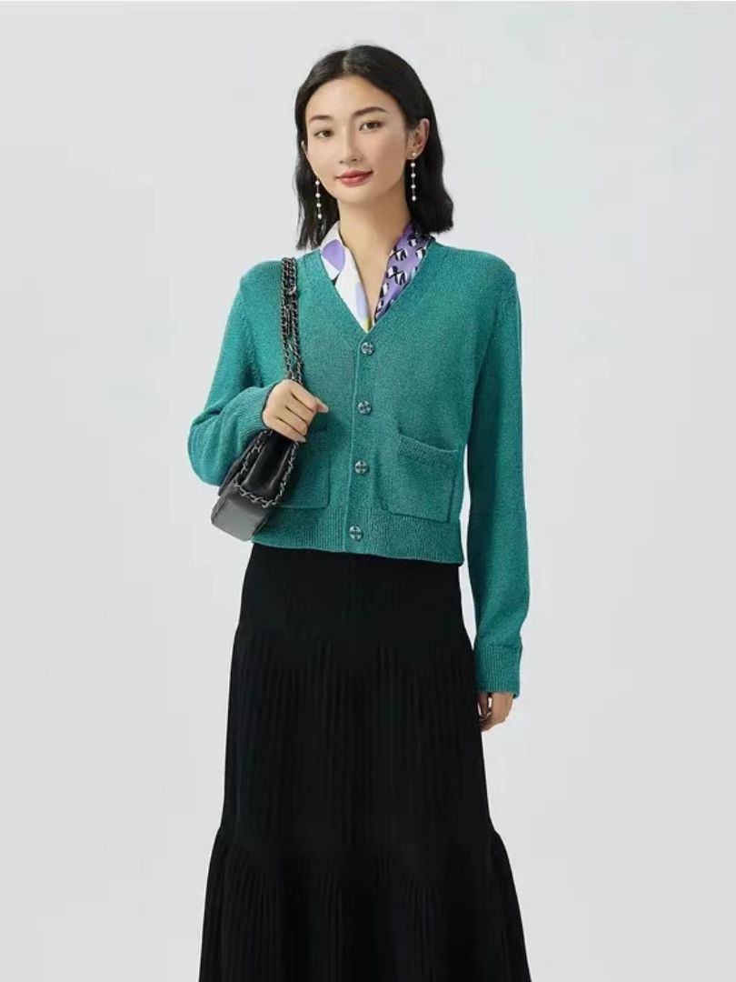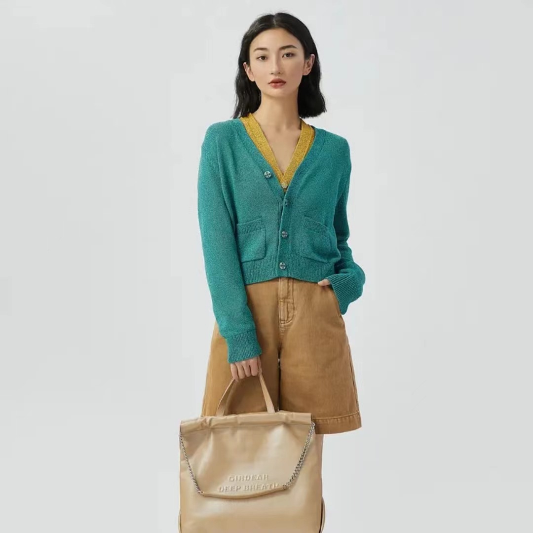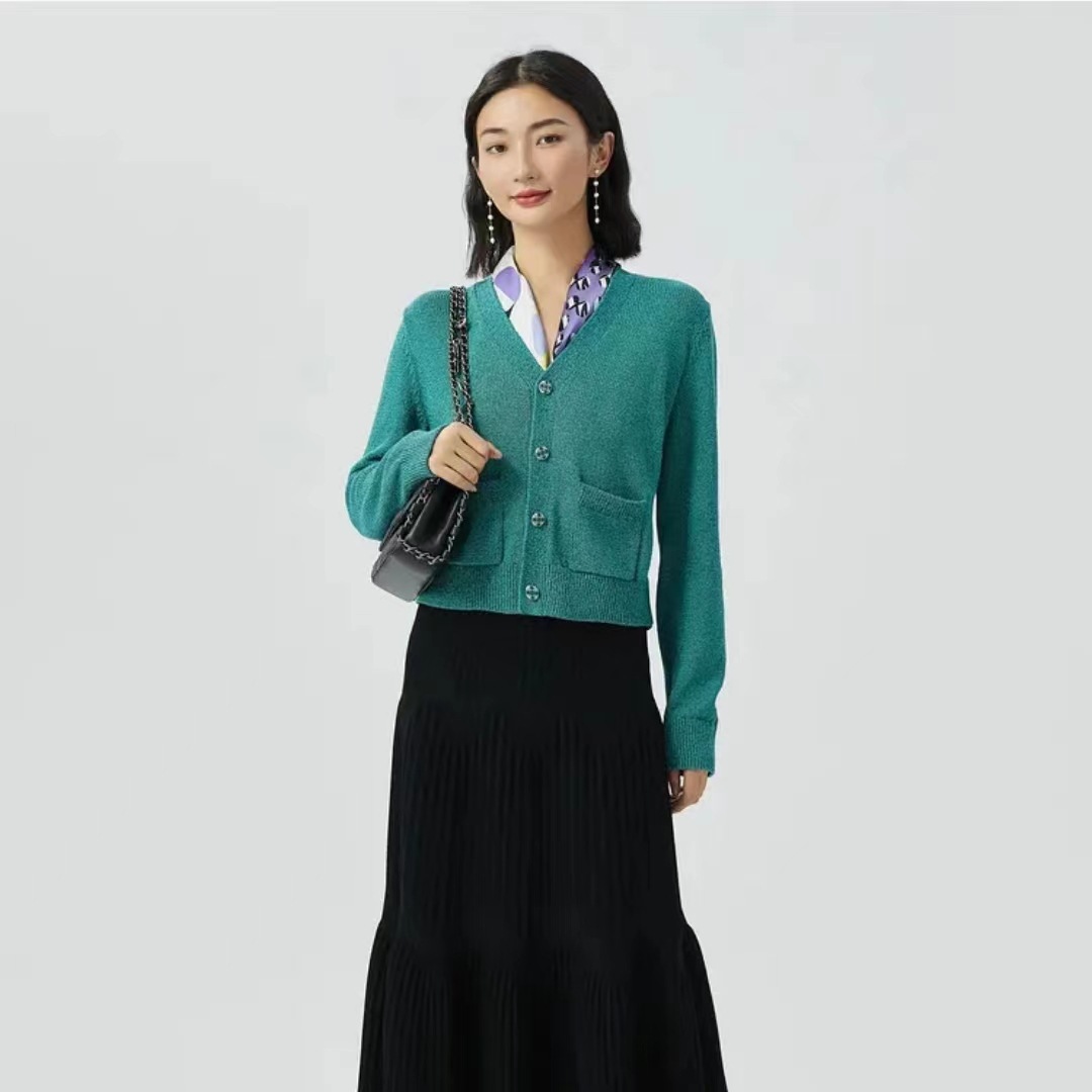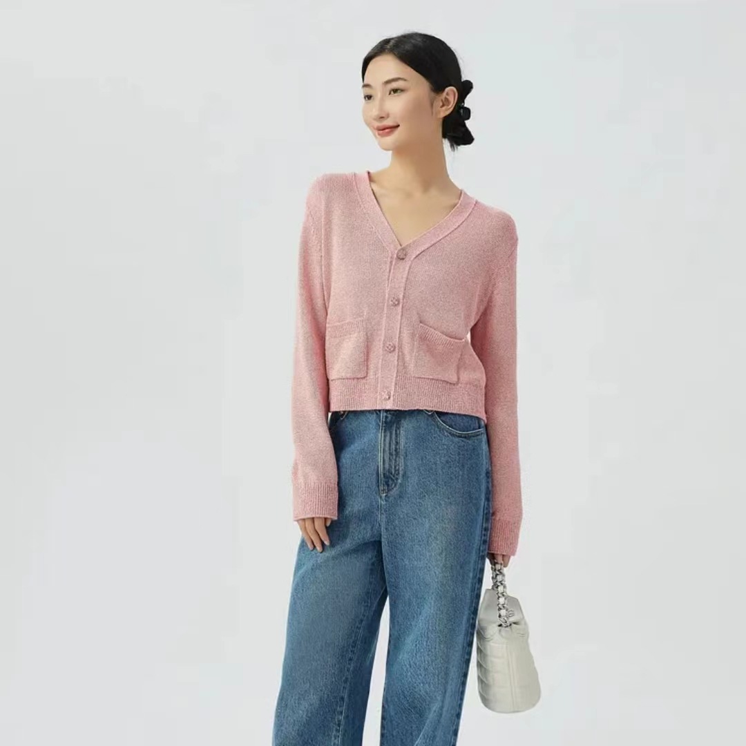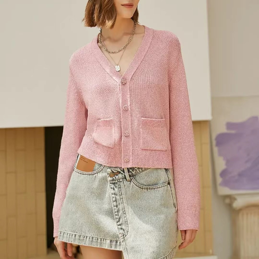 오빠의 새로운 여성 2023 가을과 겨울 새로운 V-넥 작은 향기로운 스타일 니트 카디건 긴 소매 코트 여성 A400922