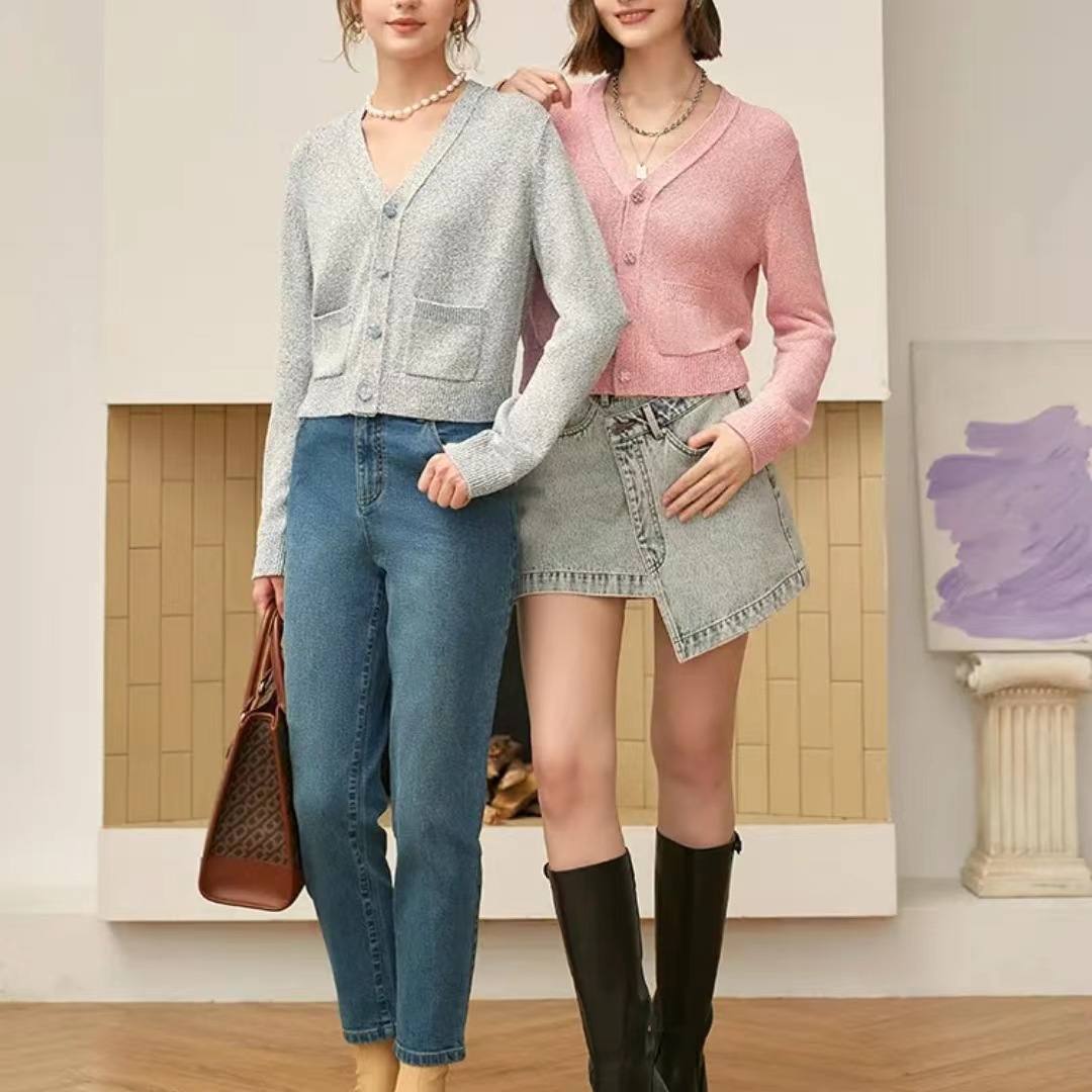 오빠의 새로운 여성 2023 가을과 겨울 새로운 V-넥 작은 향기로운 스타일 니트 카디건 긴 소매 코트 여성 A400922스토어 가기