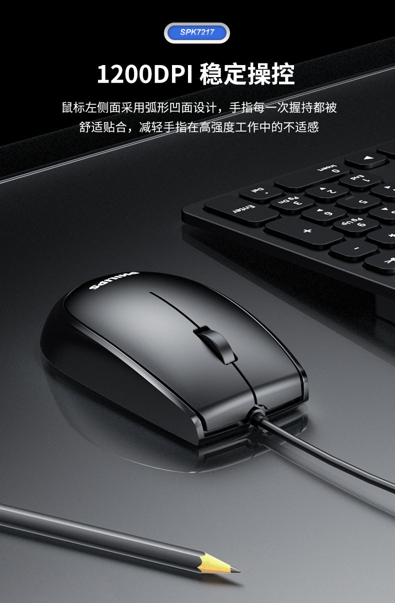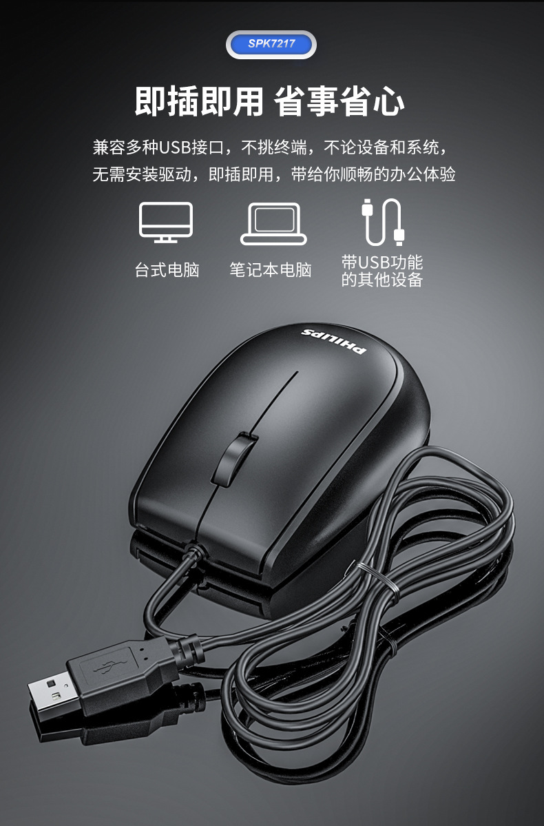 필립스 SPK7217 마우스 유선 마우스 사무실 휴대용 마우스 인체 공학적 노트 컴퓨터 마우스스토어 가기