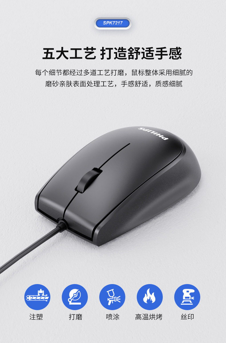 필립스 SPK7217 마우스 유선 마우스 사무실 휴대용 마우스 인체 공학적 노트 컴퓨터 마우스