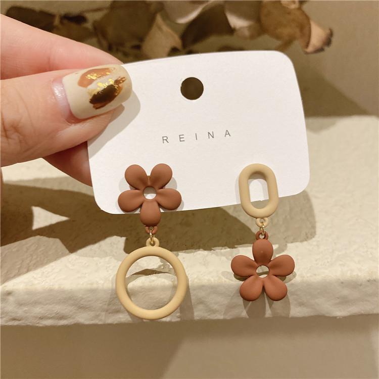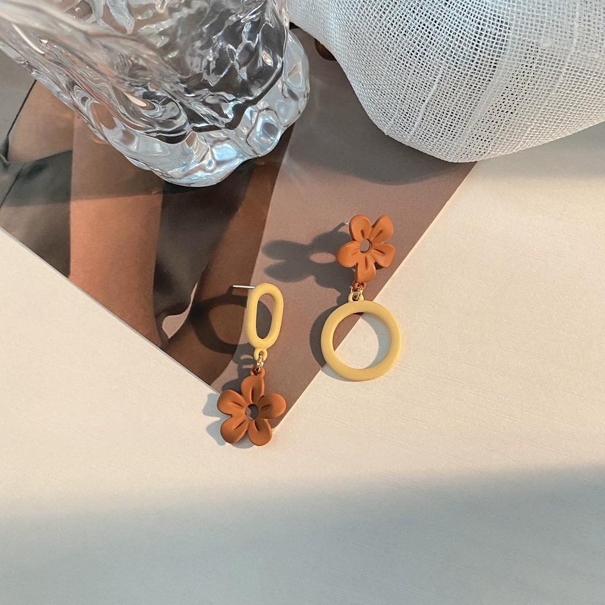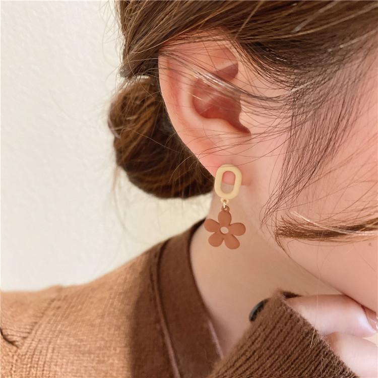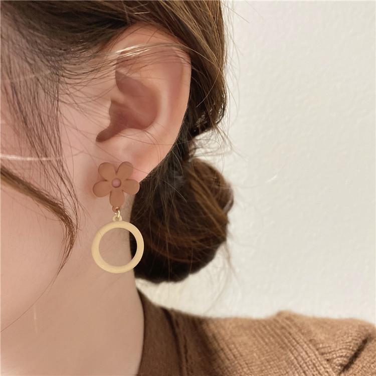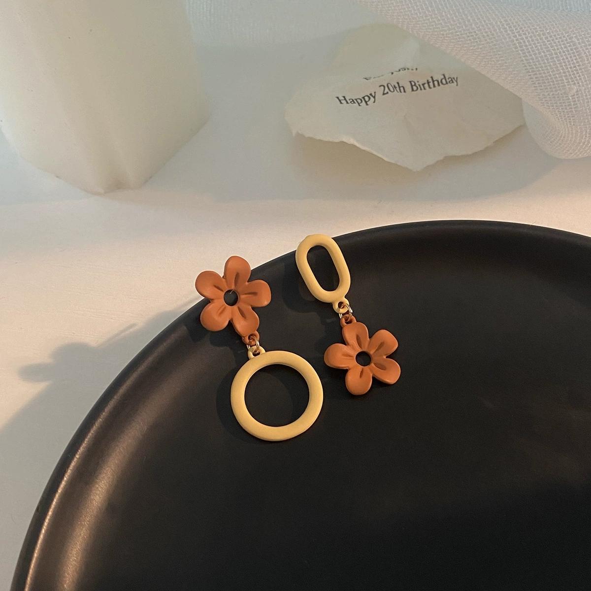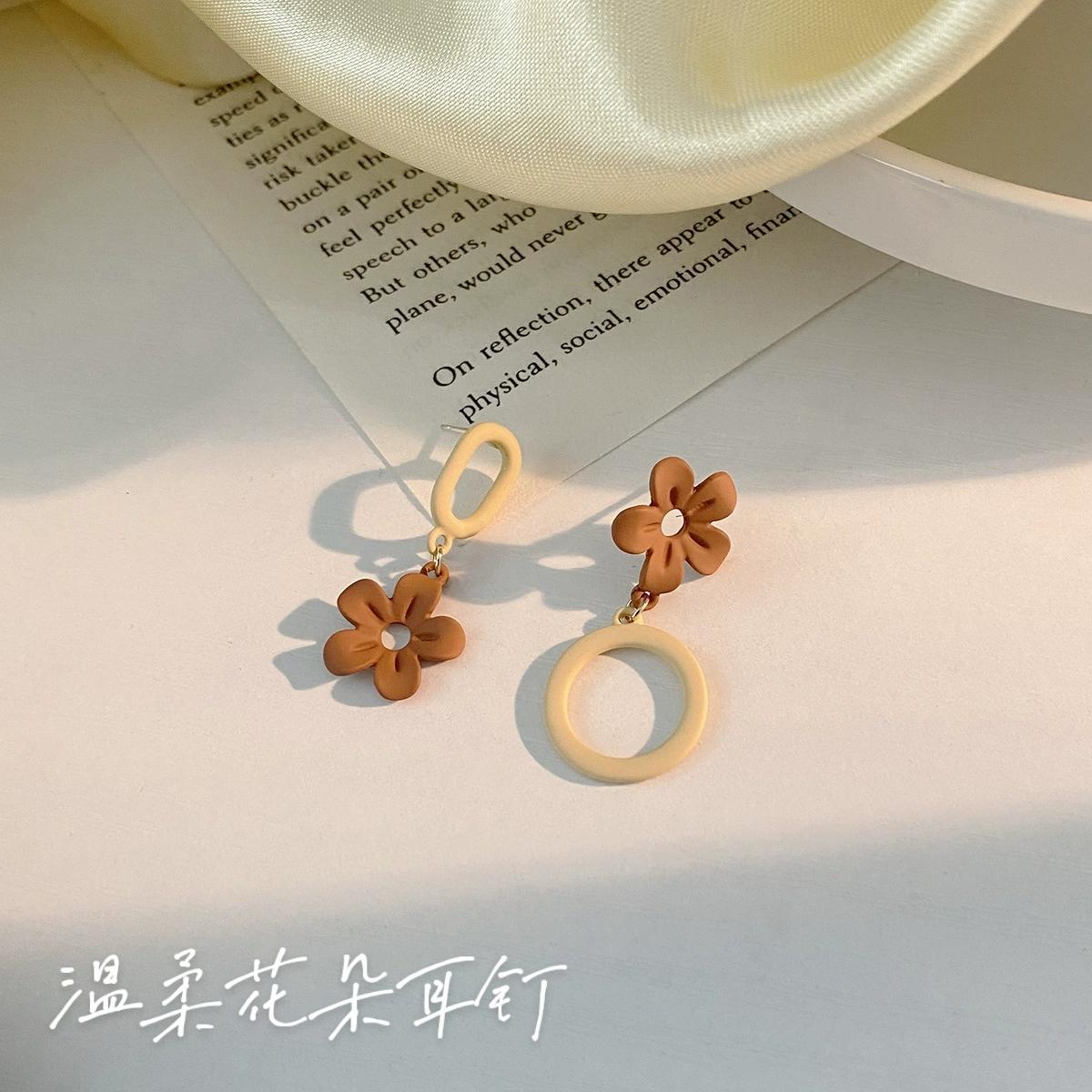 S925 실버 바늘 티 스타일 가을과 겨울 대비 색상 부드러운 꽃 귀걸이 2021 새로운 유행 틈새 한국 스타일 스터드 귀걸이스토어 가기