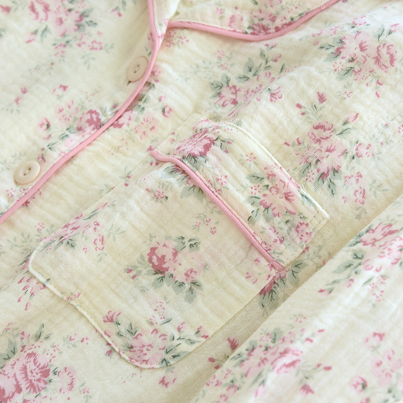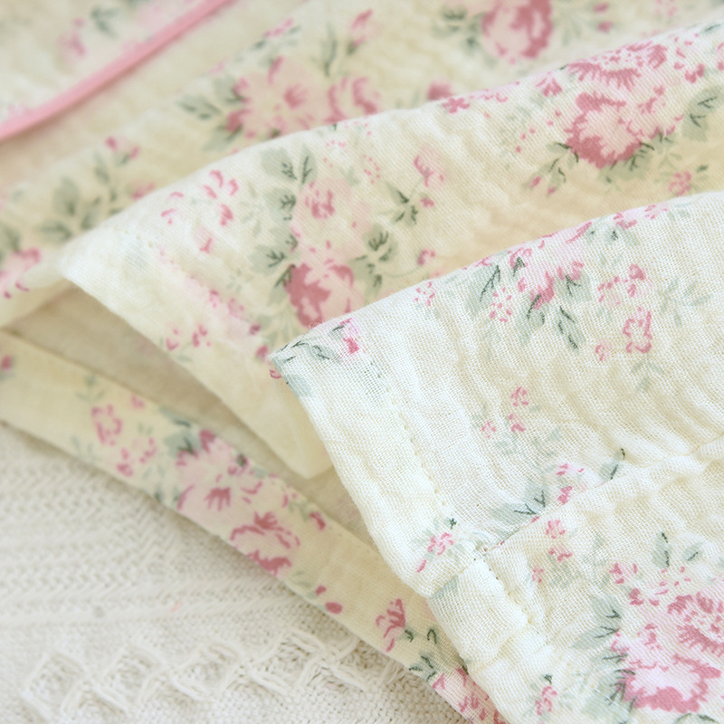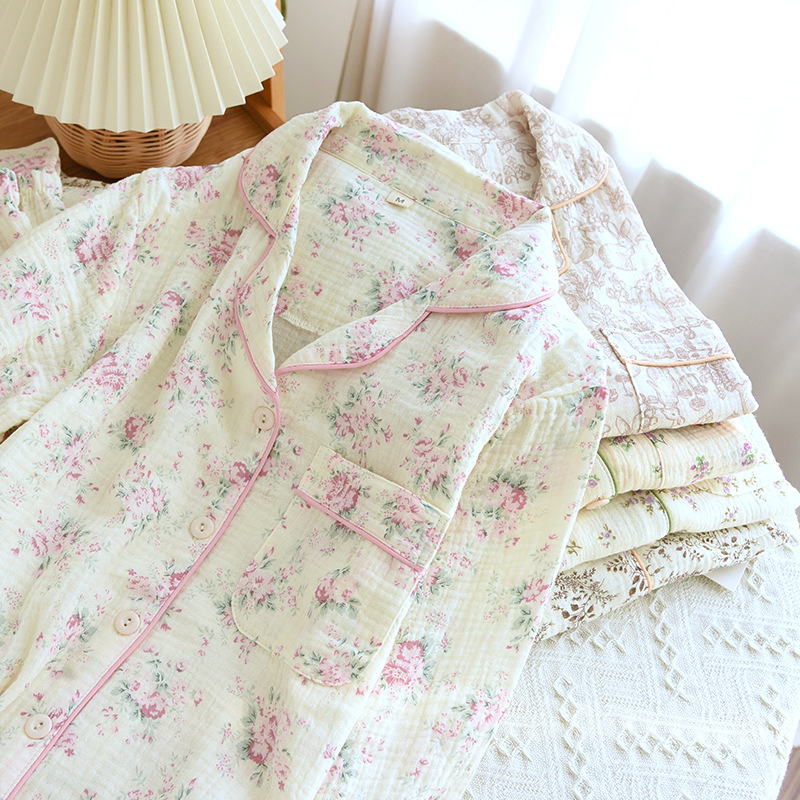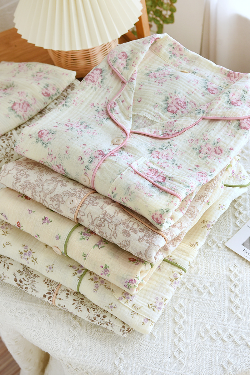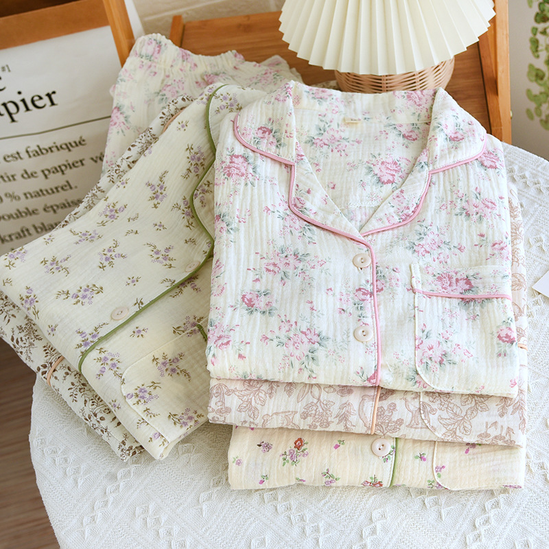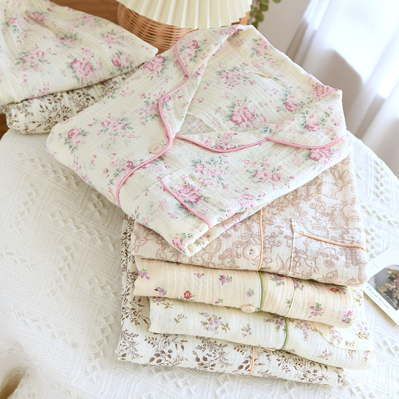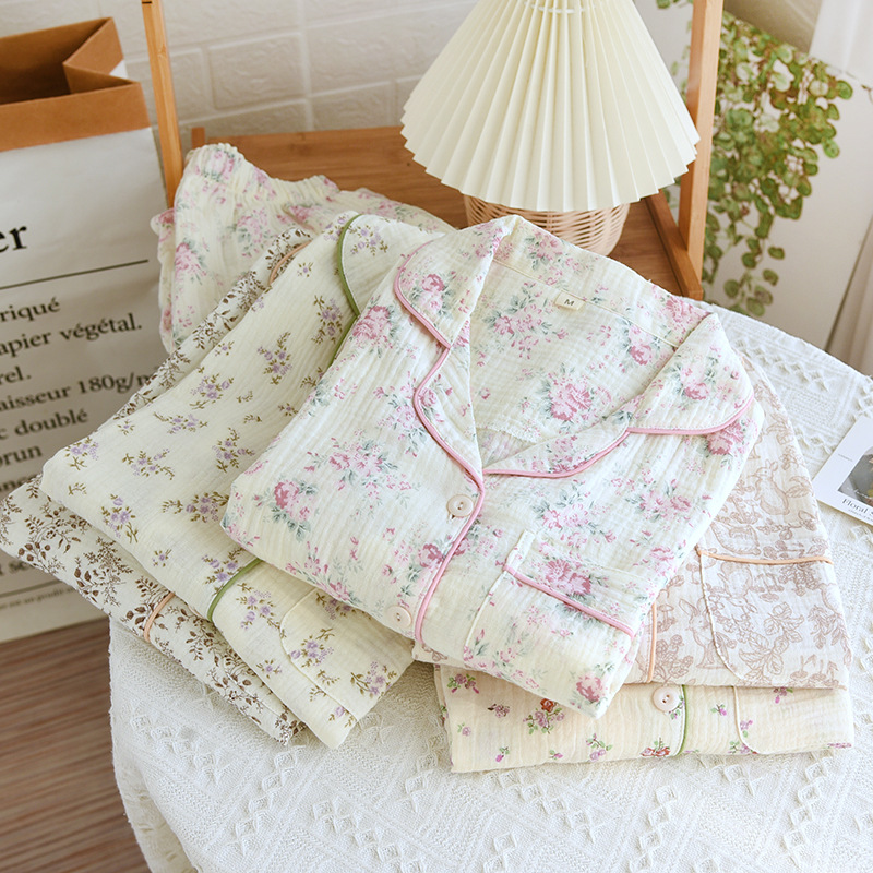 새로운 도착 잠옷 여자의 가을 긴팔 면 더블 레이어 원사 만든 천 달콤한 소녀 스타일 꽃 플러스 사이즈 가정 옷 세트