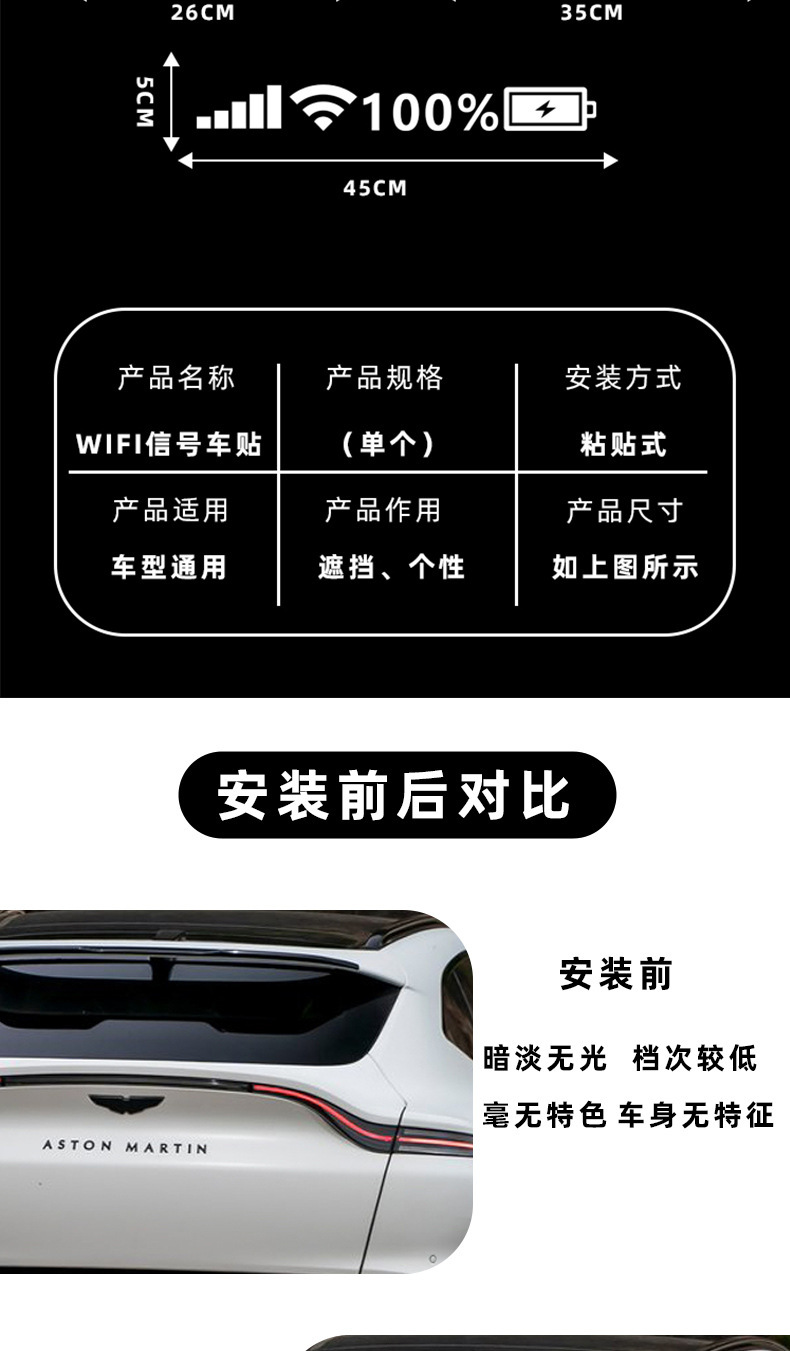 크로스 보더 자동차 스티커 후방 앞 유리 앞 유리 장식 스티커 WIFI 신호 전원 표시 반사 스티커스토어 가기
