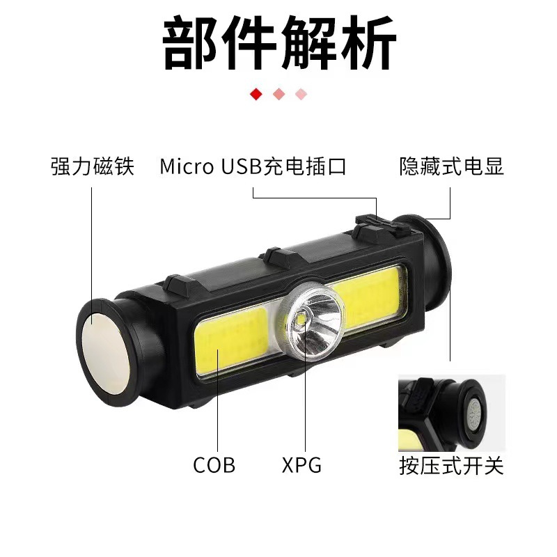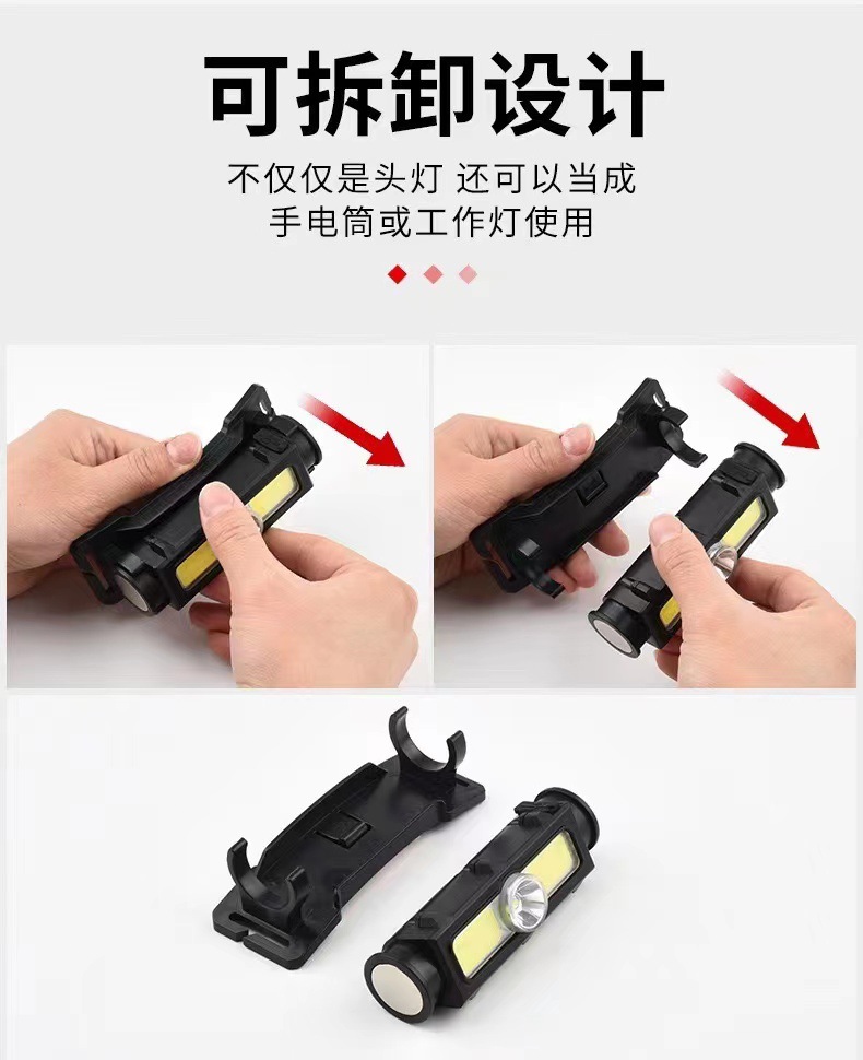 크로스 보더 COB 듀얼 광원 전조등 자석 작업등 다기능 야외 LED 화이트 라이트 레드 라이트 경고 야간 낚시 전조등