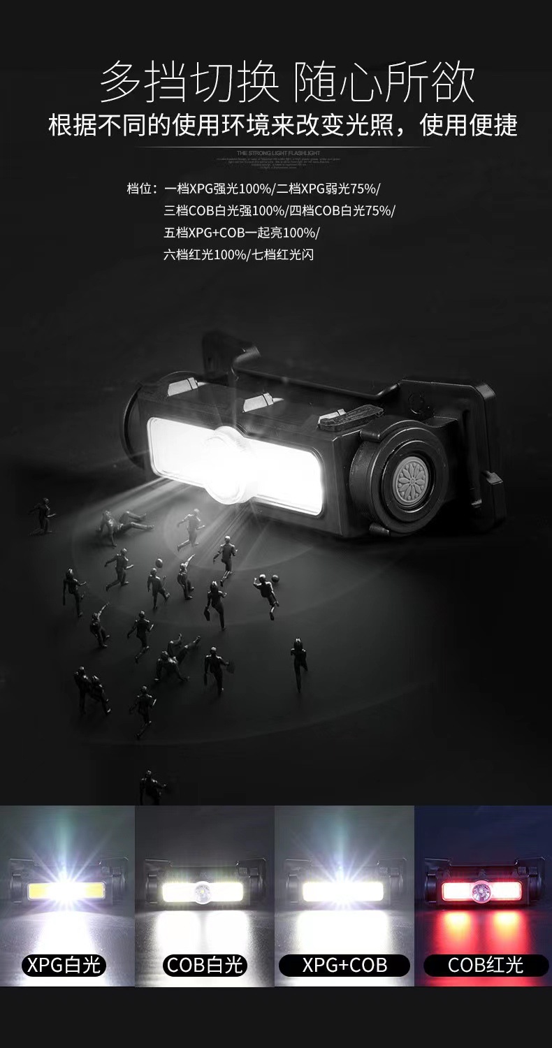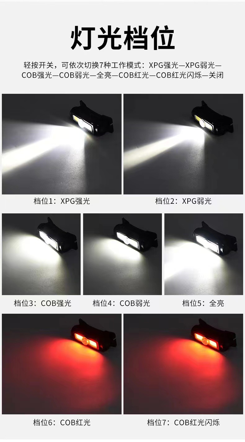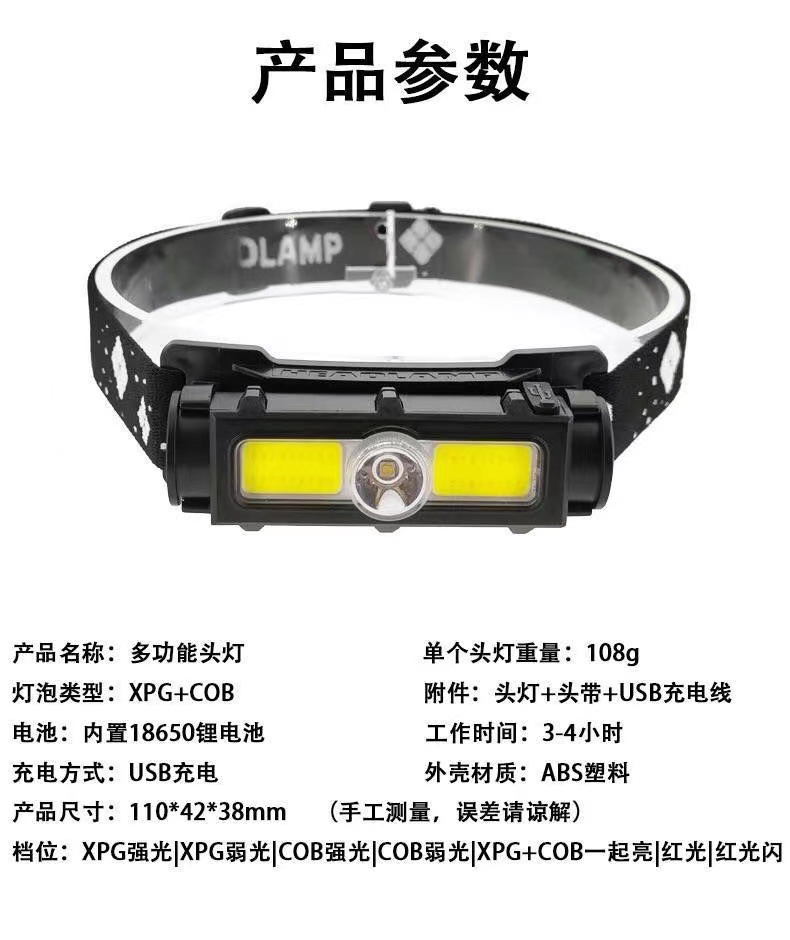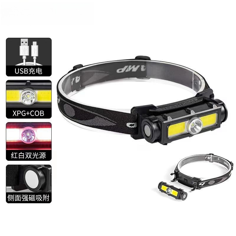 크로스 보더 COB 듀얼 광원 전조등 자석 작업등 다기능 야외 LED 화이트 라이트 레드 라이트 경고 야간 낚시 전조등스토어 가기