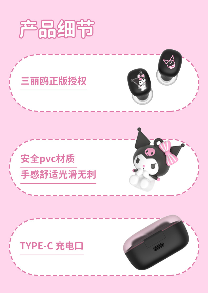 블루투스 헤드셋 산리오 인형 조인트 쿨로미 인 이어 소음 감소 헤드셋 산리오 반투명 블루투스 헤드셋