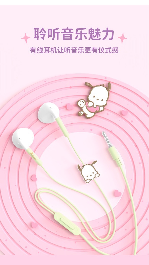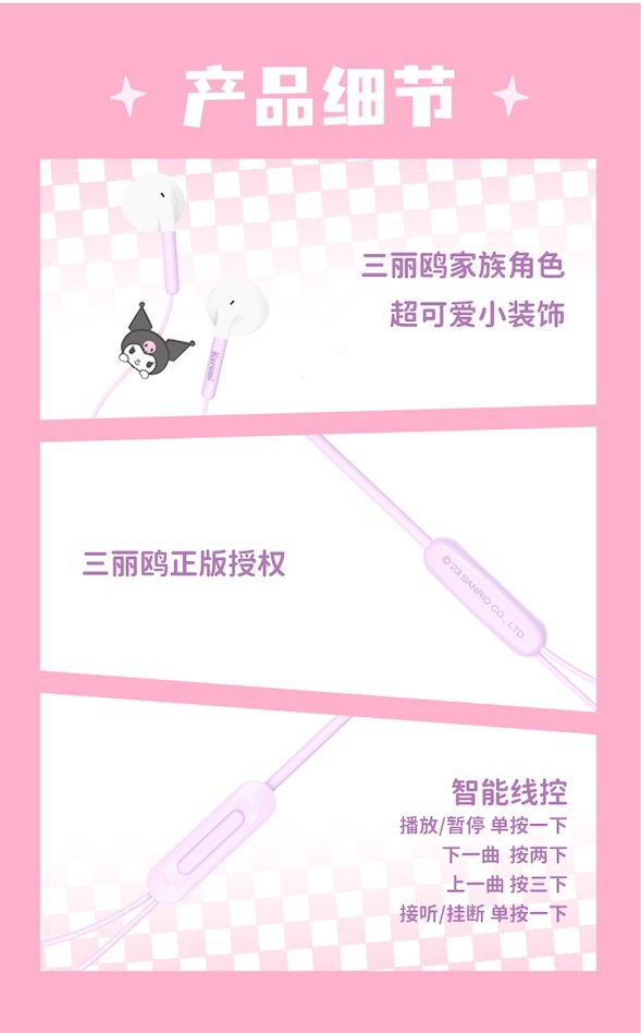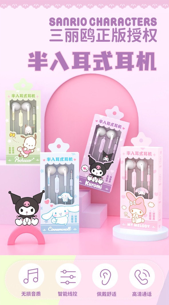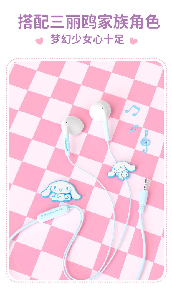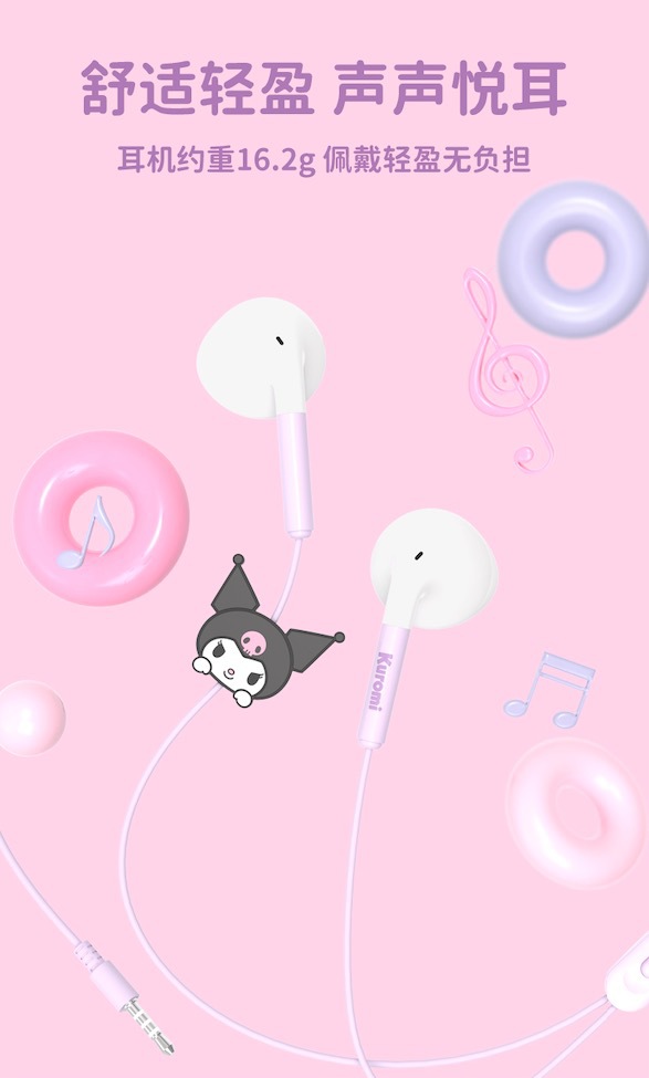 Sanrio kulomi 유선 헤드셋 휴대 전화 3.5mm 둥근 구멍 데스크탑 컴퓨터 2023 새로운 하이파이 고품질스토어 가기