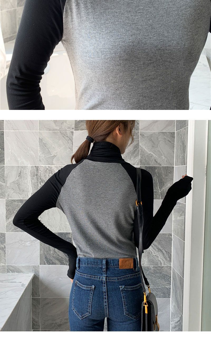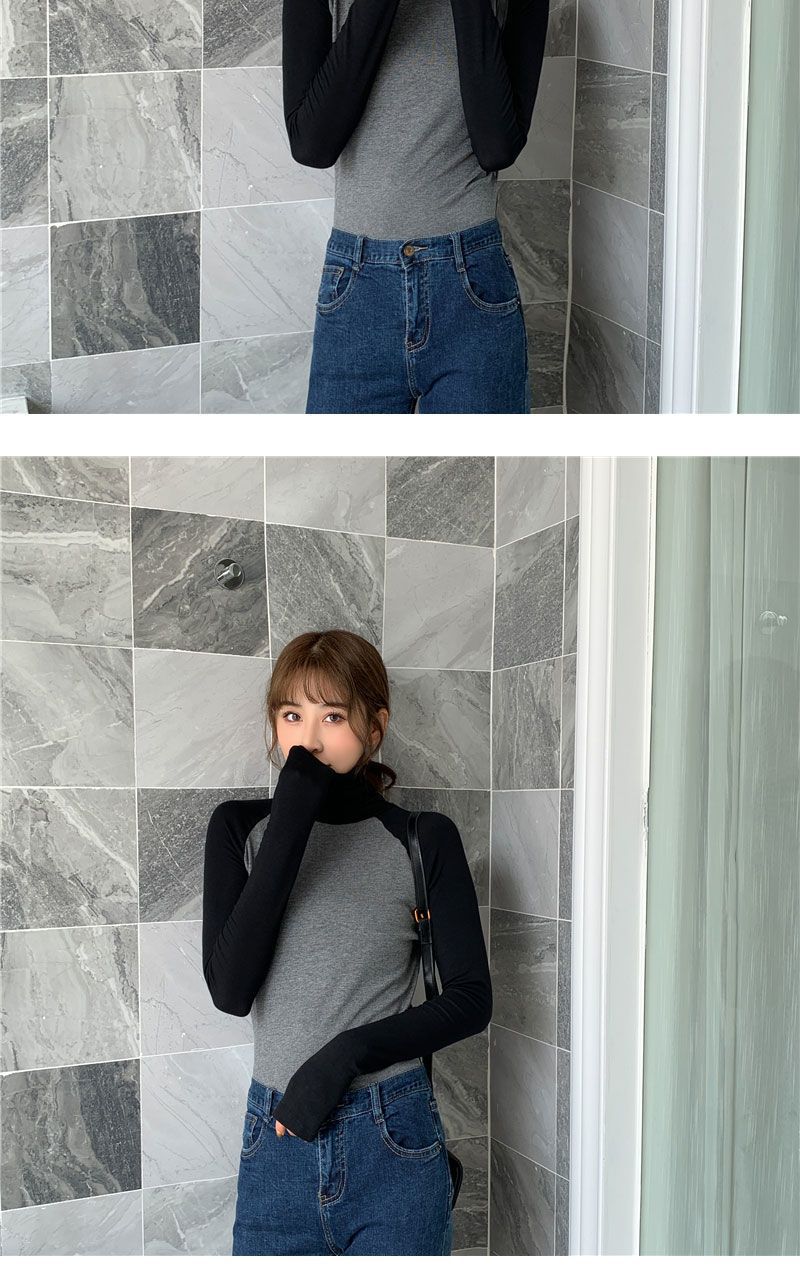 가을과 겨울 2023 새로운 유럽식 여성용 양털 하이 칼라 긴팔 대비 슬림핏 베이스 셔츠 내부 파일 칼라 탑스토어 가기