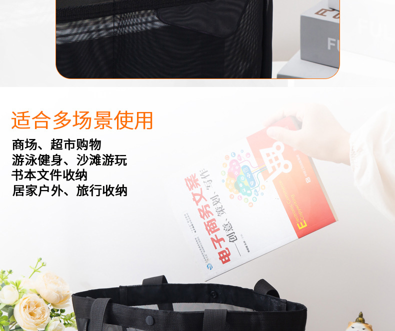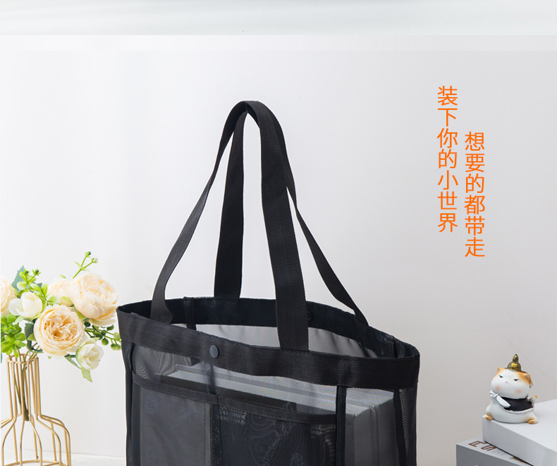 메쉬 토트백 대용량 나일론 메쉬 보관 가방 쇼핑백 야외 휴대용 숄더백 비치 백스토어 가기