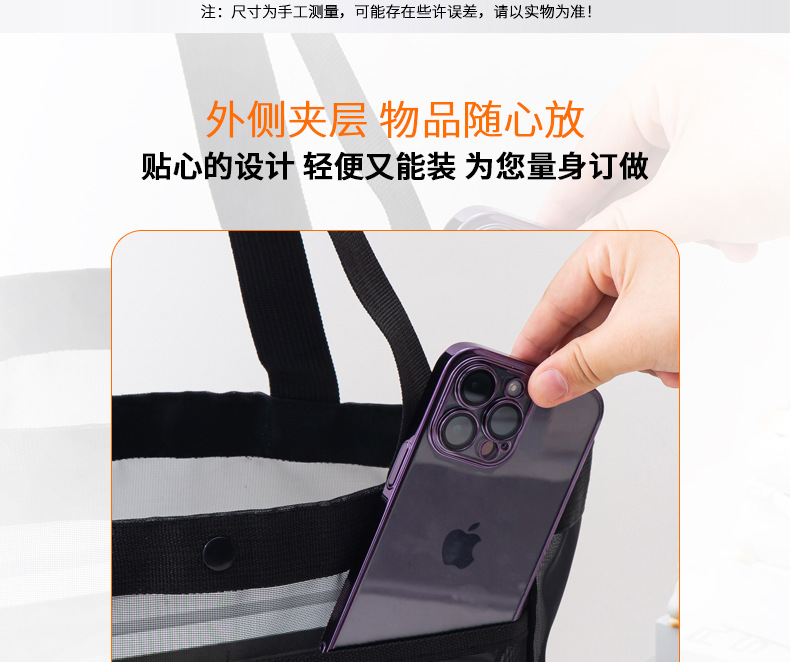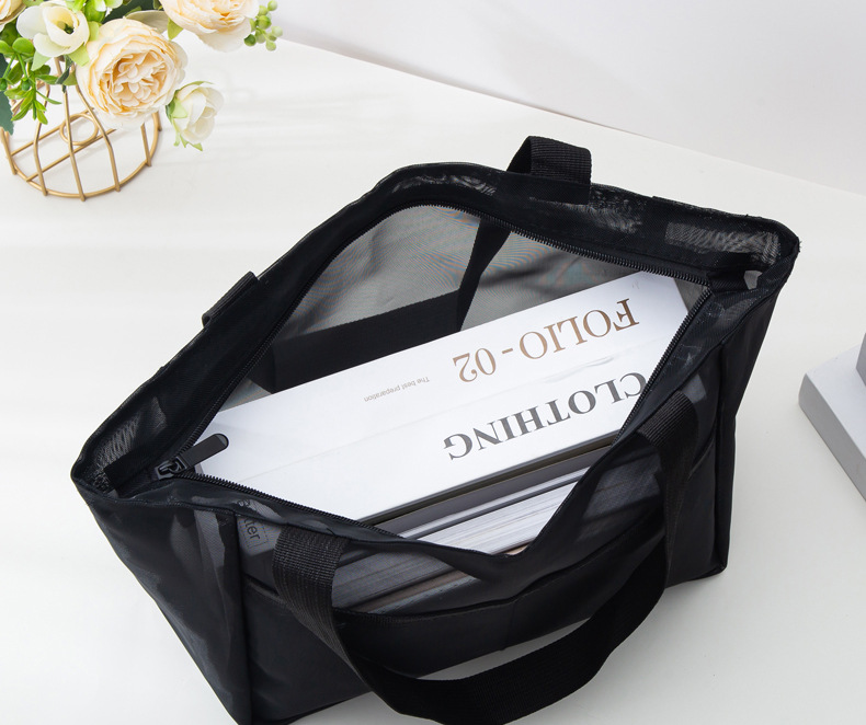 메쉬 토트백 대용량 나일론 메쉬 보관 가방 쇼핑백 야외 휴대용 숄더백 비치 백