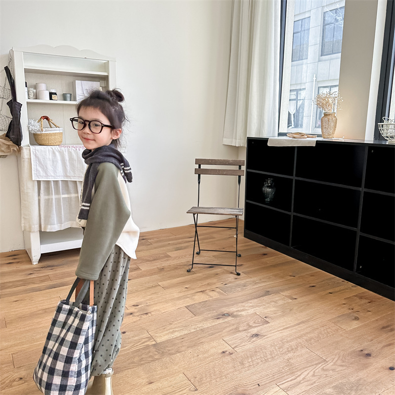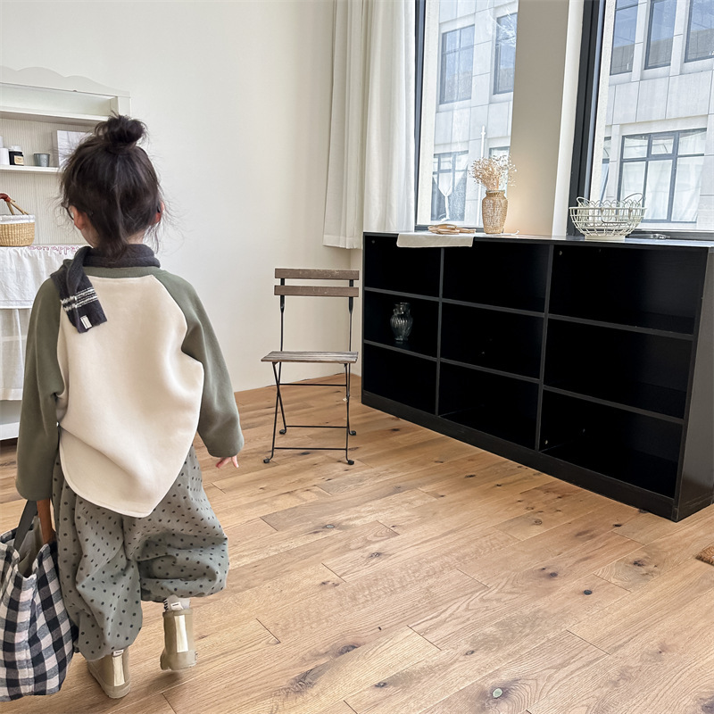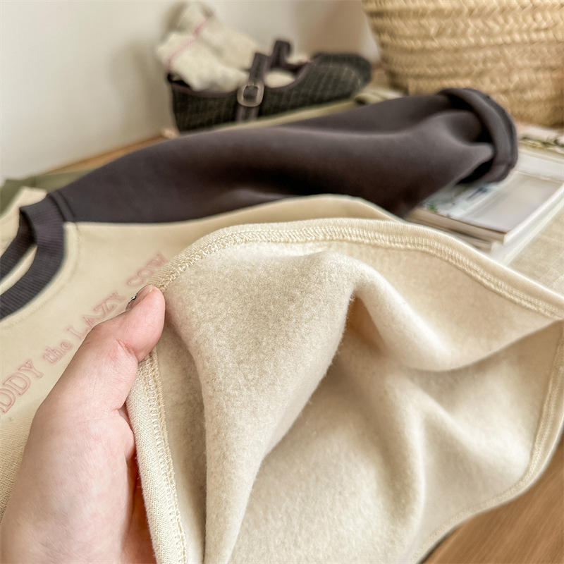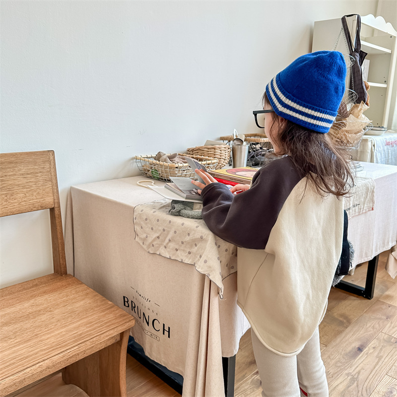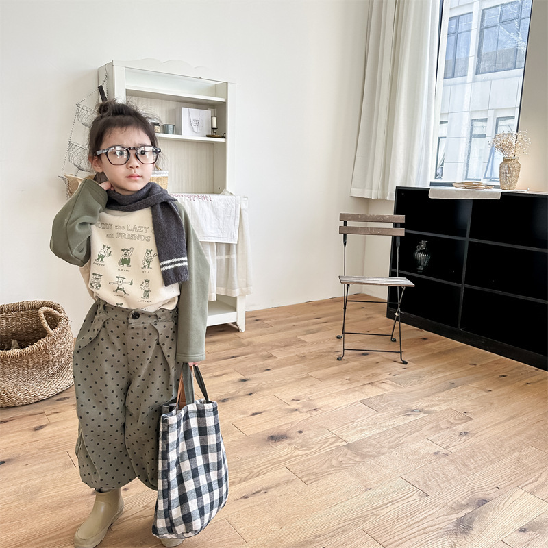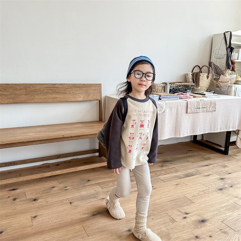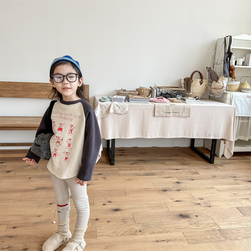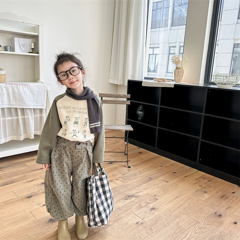 어린이 스웨터 2023 가을과 겨울 어린이 스웨터 어린이 느슨한 만화 인쇄 스티칭 양털 따뜻한 스웨터 탑