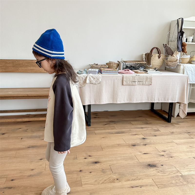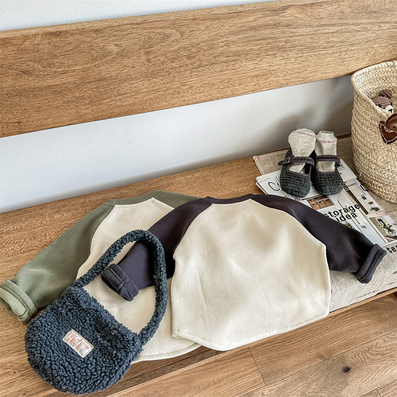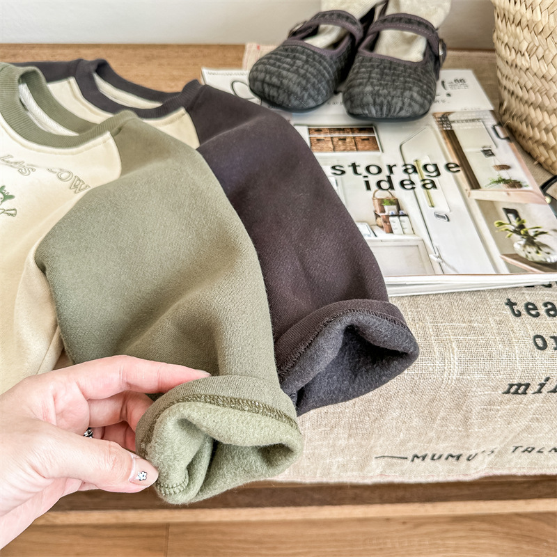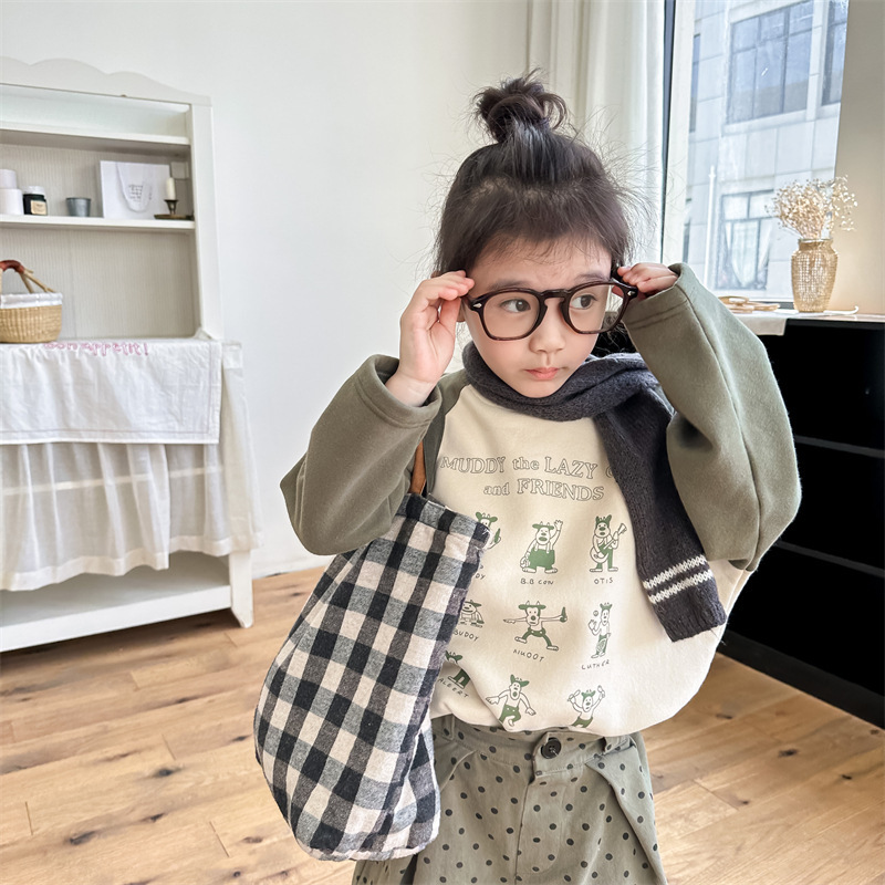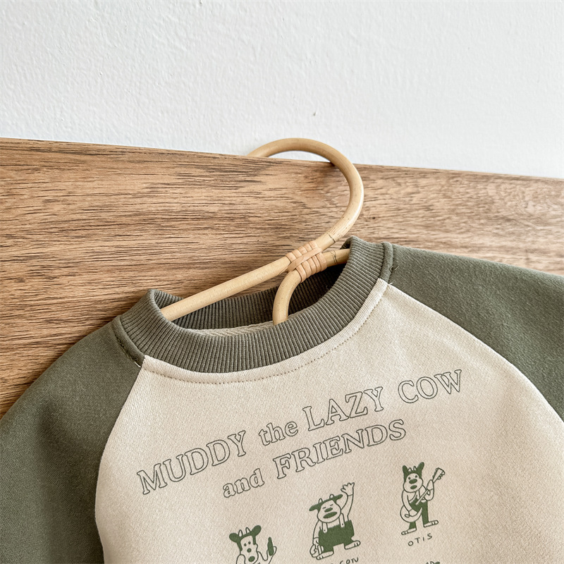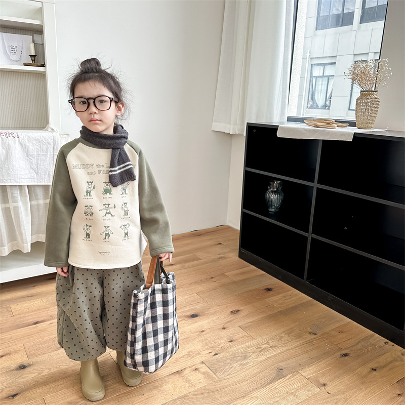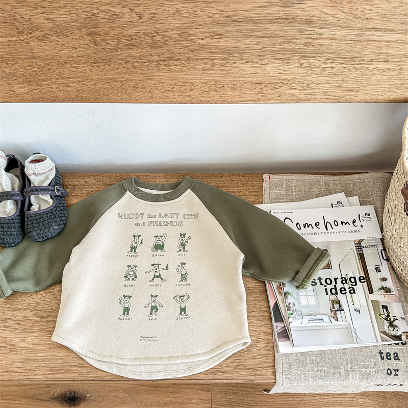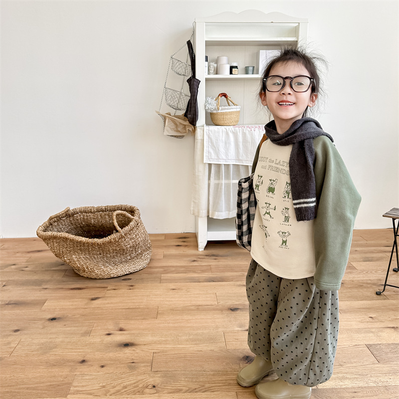 어린이 스웨터 2023 가을과 겨울 어린이 스웨터 어린이 느슨한 만화 인쇄 스티칭 양털 따뜻한 스웨터 탑스토어 가기