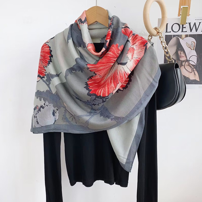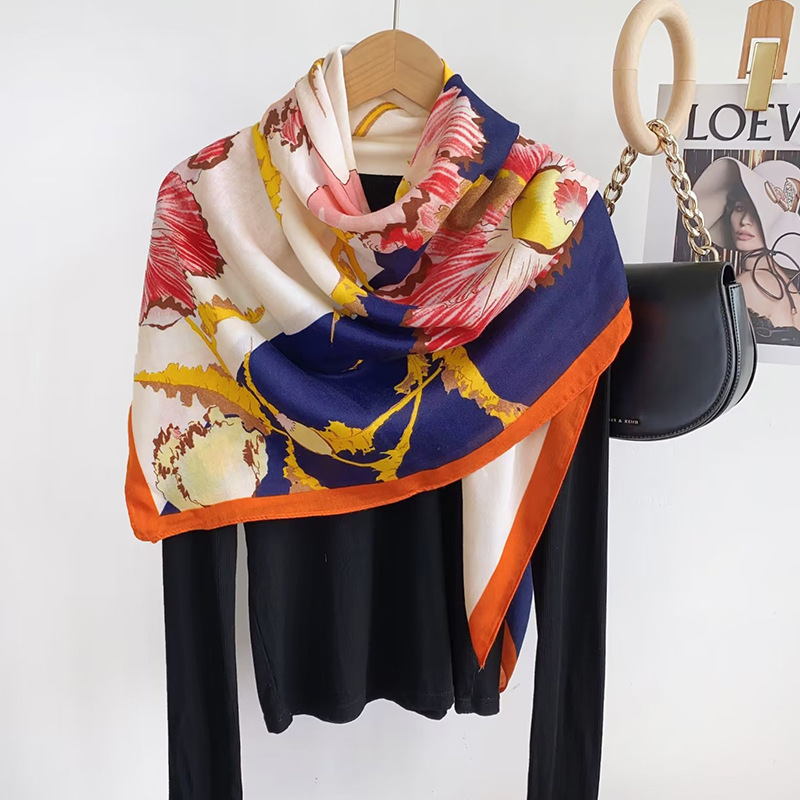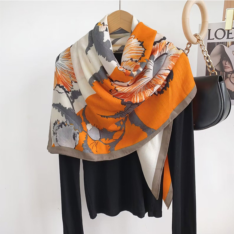 세련된 모든 일치 가을과 겨울 코튼 린넨 핸드 느낌 얇은 110 스퀘어 스카프 헤링본 패턴 스티칭 인쇄 스카프 여성 숄